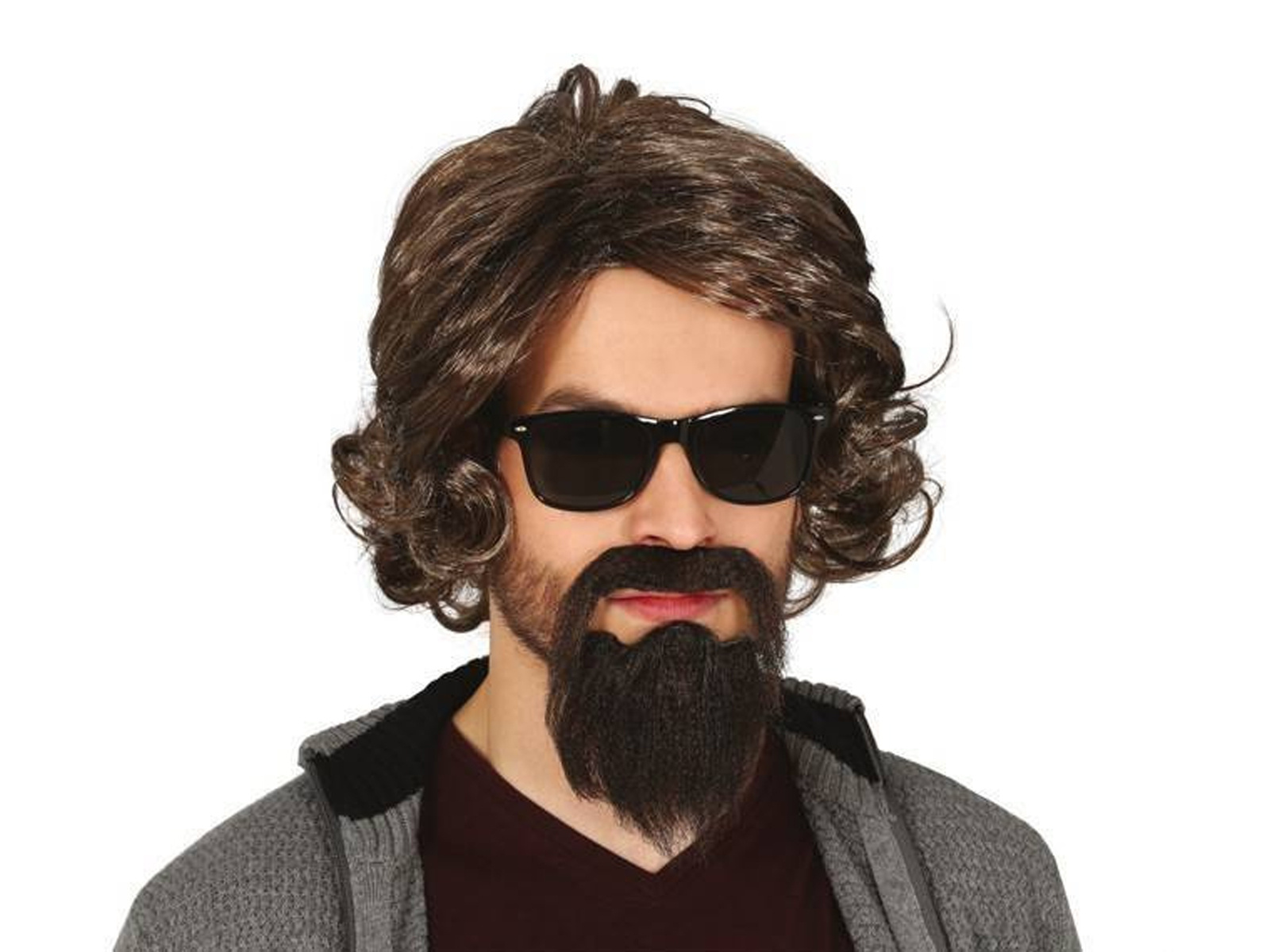 Brązowa męska peruka z brodą - 1 szt.