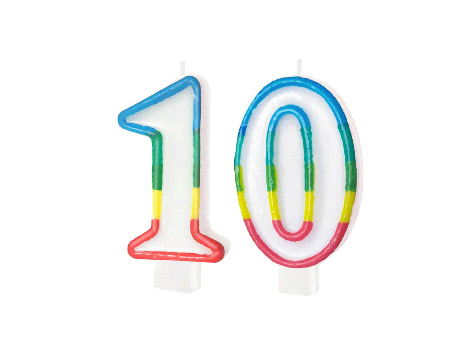 Świeczki cyferki z kolorową obwódką cyfra 10 - 8,5 cm - 2 szt.