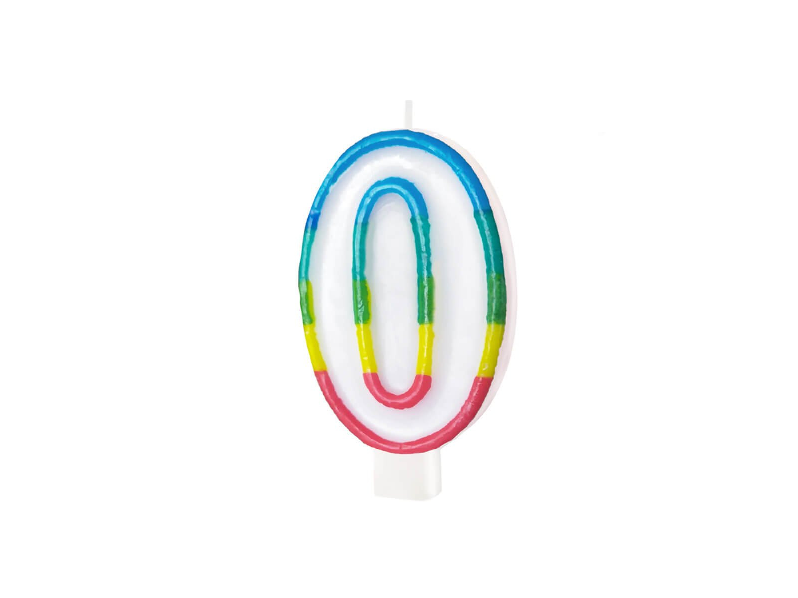- Świeczka cyferka z kolorową obwódką cyfra 0 - 8,5 cm - 1 szt.Cena: 3,49 zł / opakowanie