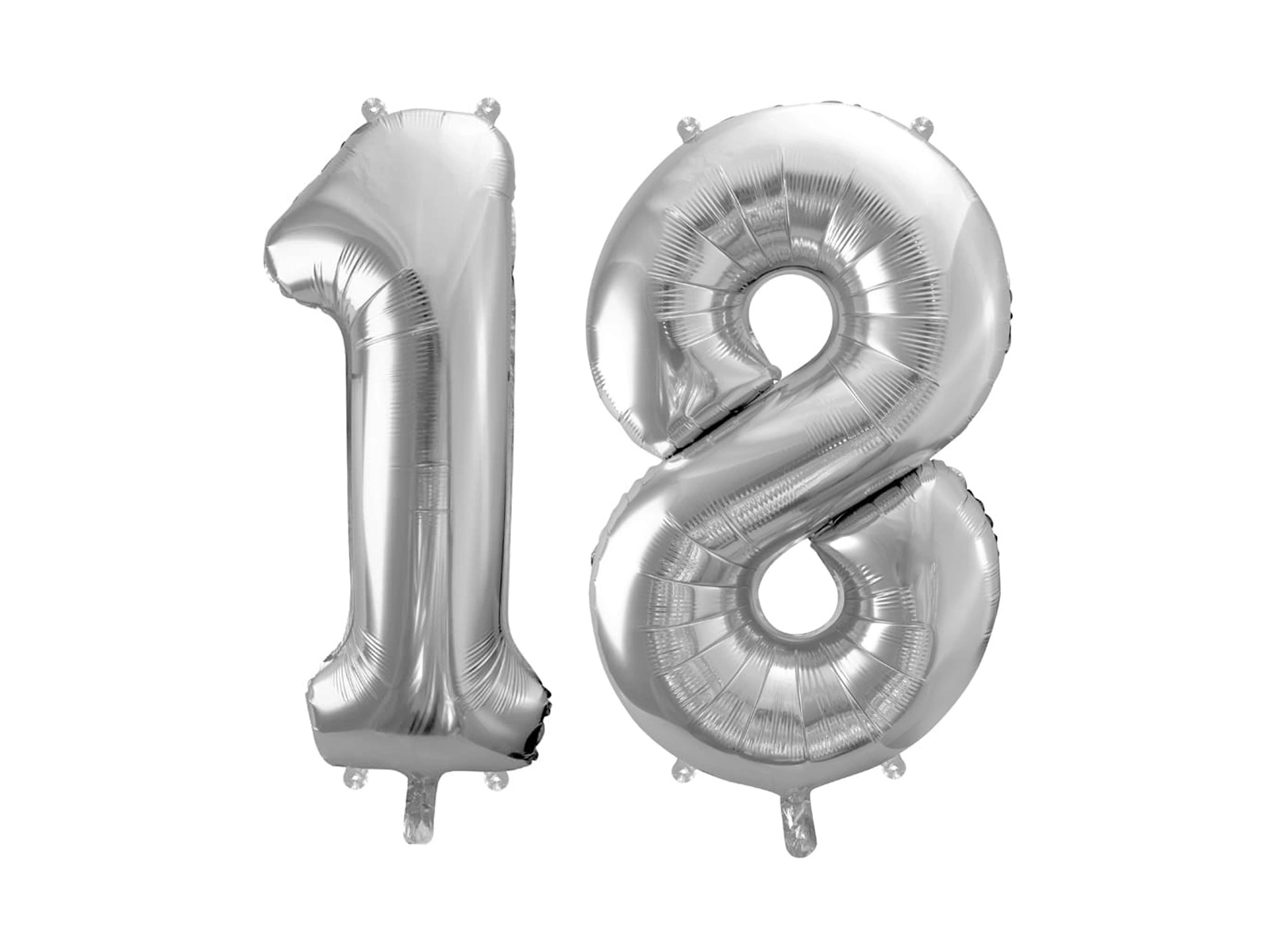 Balony foliowe cyfra 18 srebrne - 86 cm - 2 szt.
