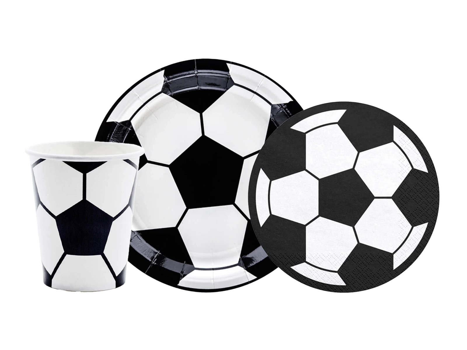 Zestaw kubeczki + talerzyki + serwetki papierowe Piłka Nożna - 44 szt.