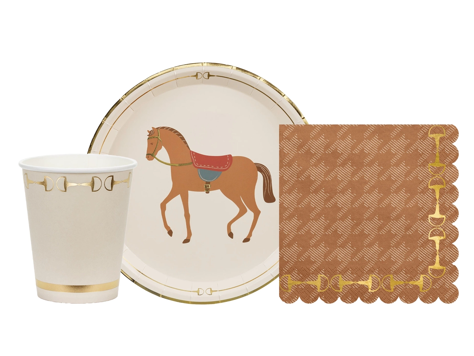 Zestaw kubeczki + talerzyki + serwetki papierowe Konie - 36szt.