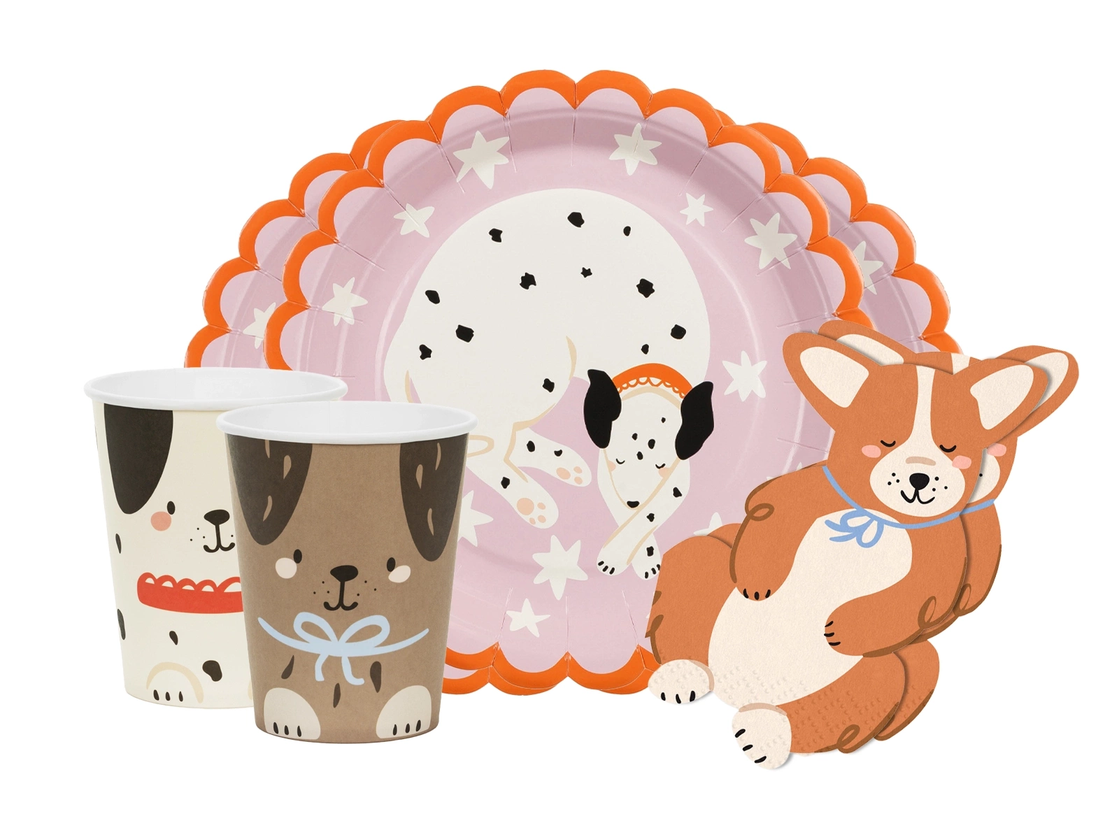 Zestaw kubeczki + talerzyki + serwetki papierowe Pieski - 36 szt.