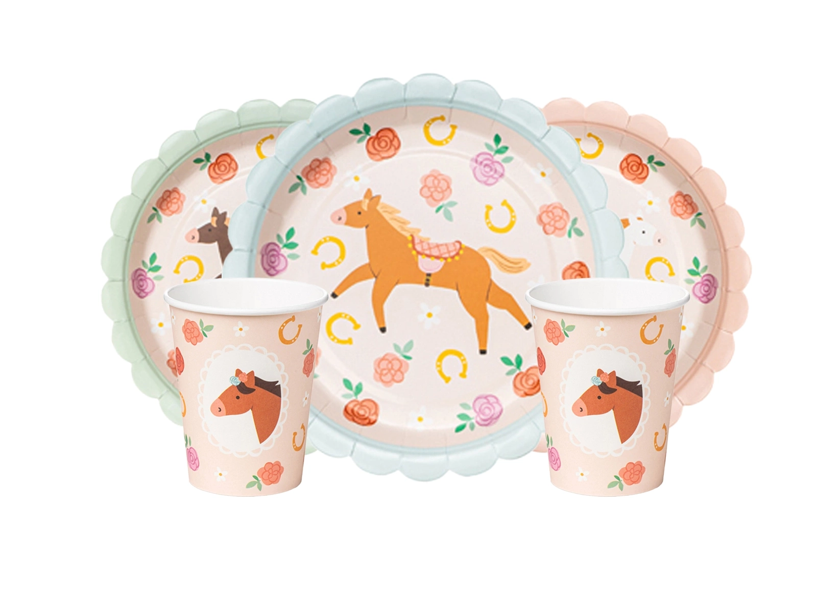 Zestaw kubeczki + talerzyki papierowe Konie - 24 szt.