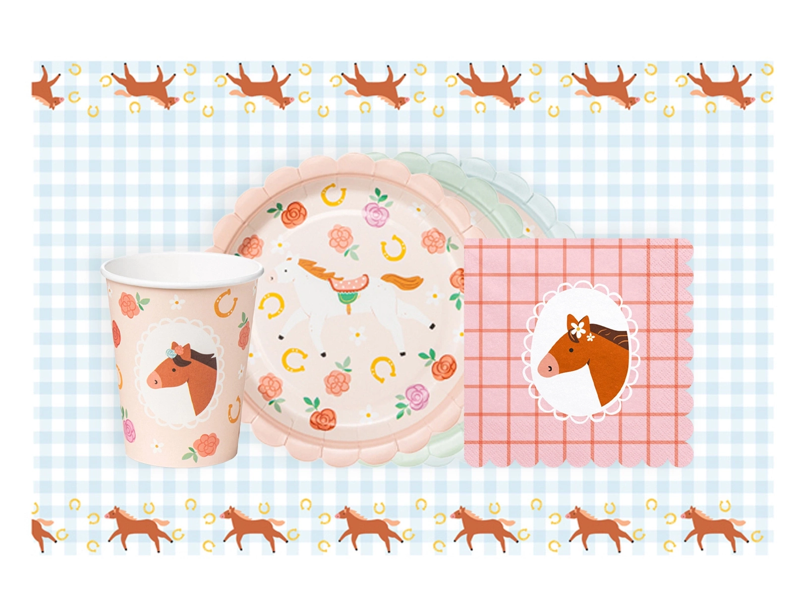Zestaw obrus + kubeczki + talerzyki + serwetki papierowe Konie - 37 szt.