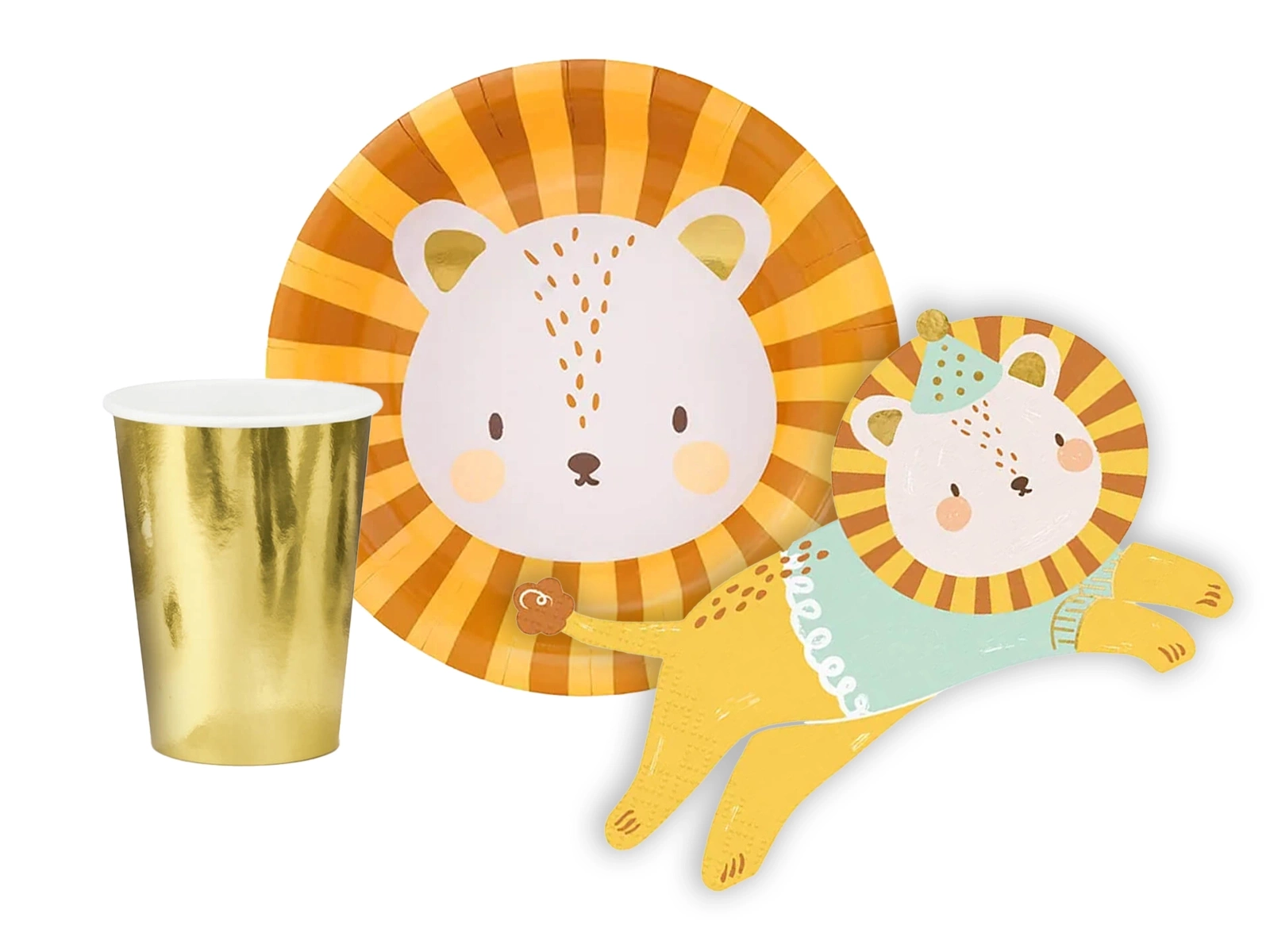 Zestaw kubeczki + talerzyki + serwetki papierowe Lew - 44 szt.