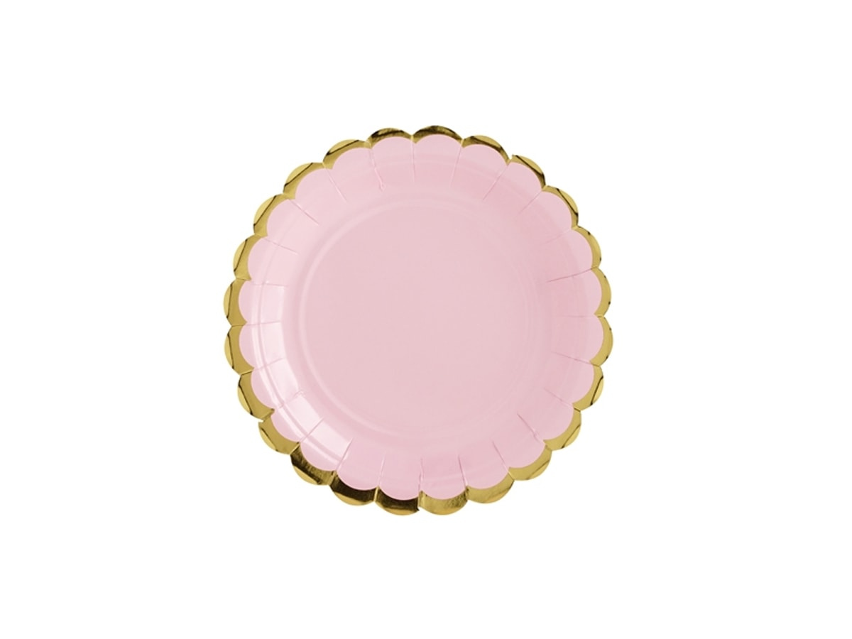 - 2x Talerzyki papierowe różowe ze złotymi brzegami - 18 cm - 6 szt.Cena: 5,99 zł / opakowania