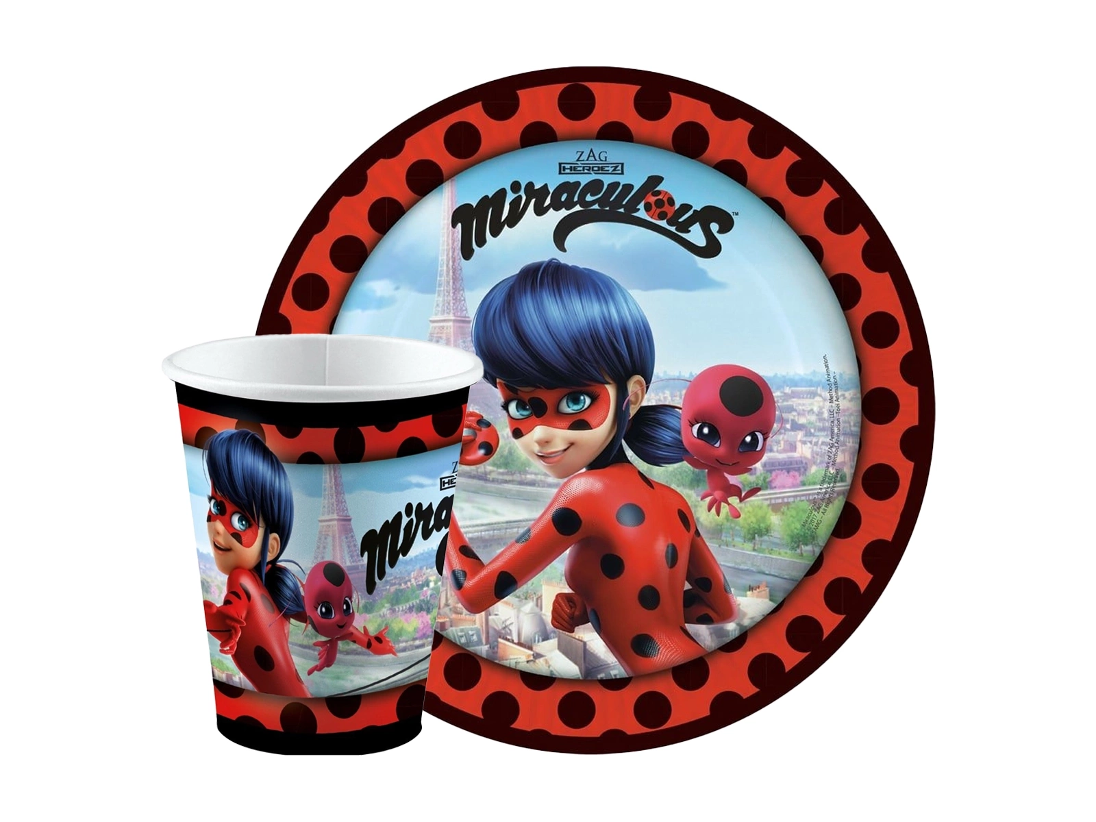 Zestaw kubeczki + talerzyki papierowe na urodziny Miraculum - 16 szt.