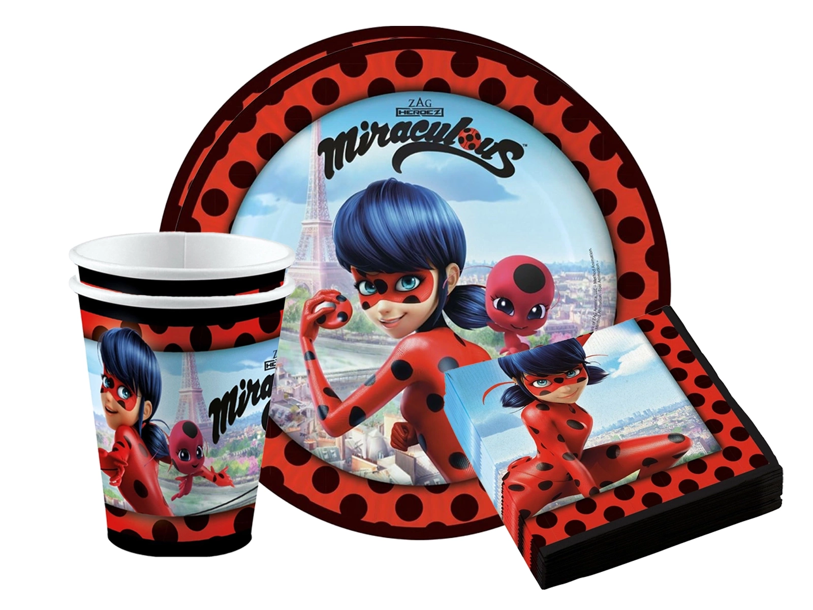 Zestaw kubeczki + talerzyki + serwetki papierowe na urodziny Miraculum - 36 szt.
