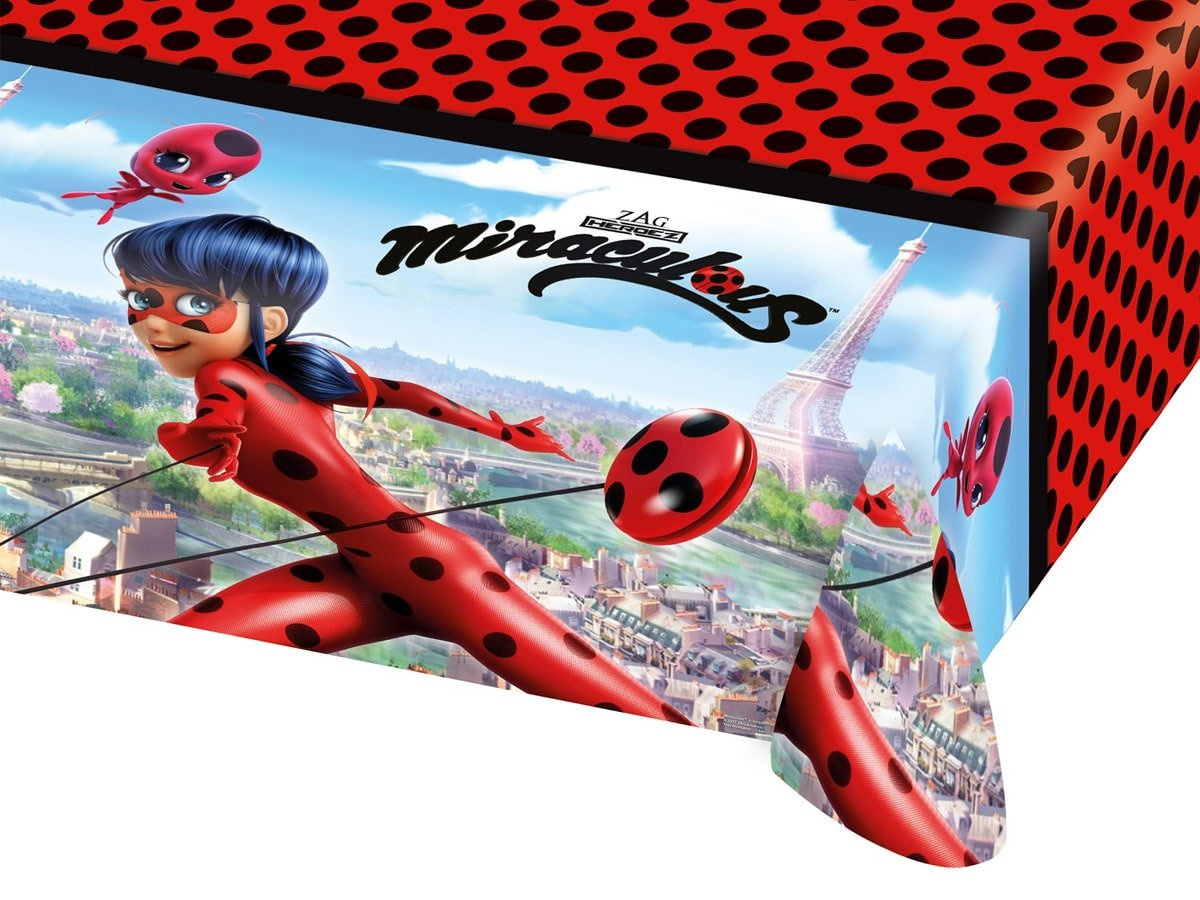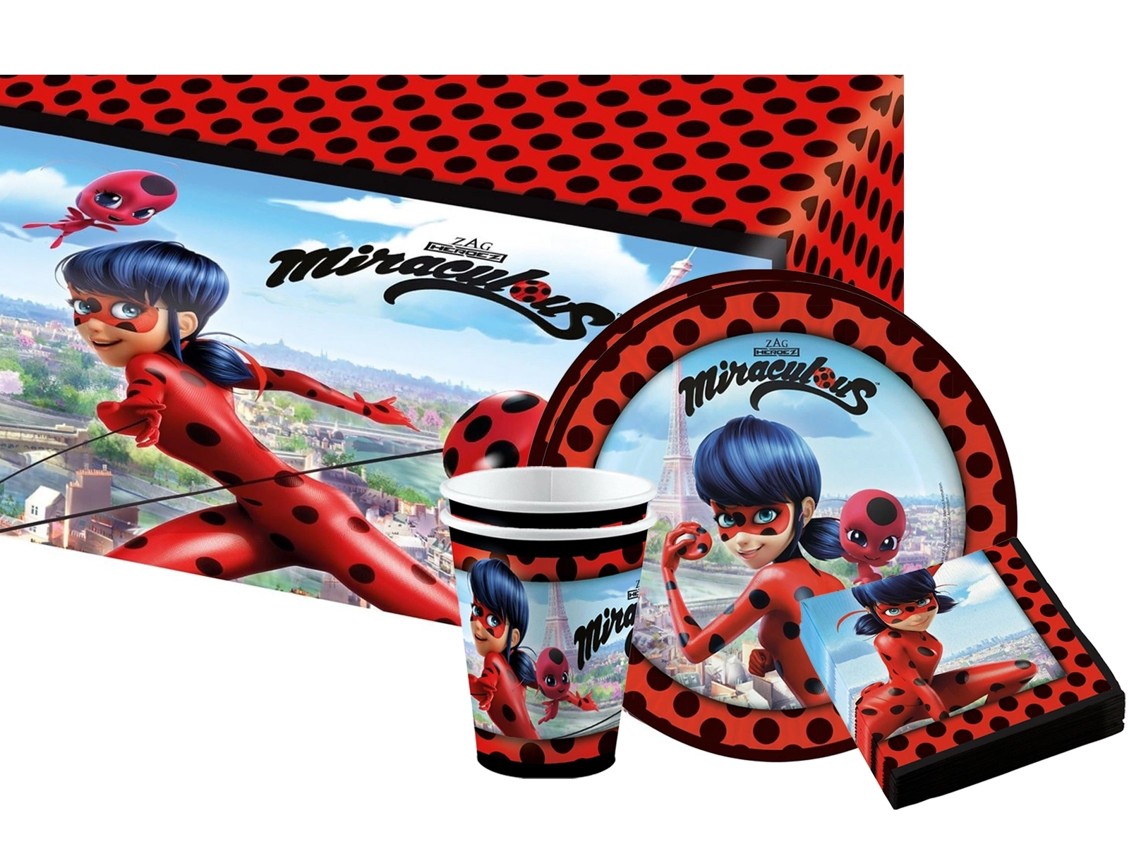 Zestaw kubeczki, talerzyki i serwetki papierowe + obrus na urodziny Miraculum - 37 szt.