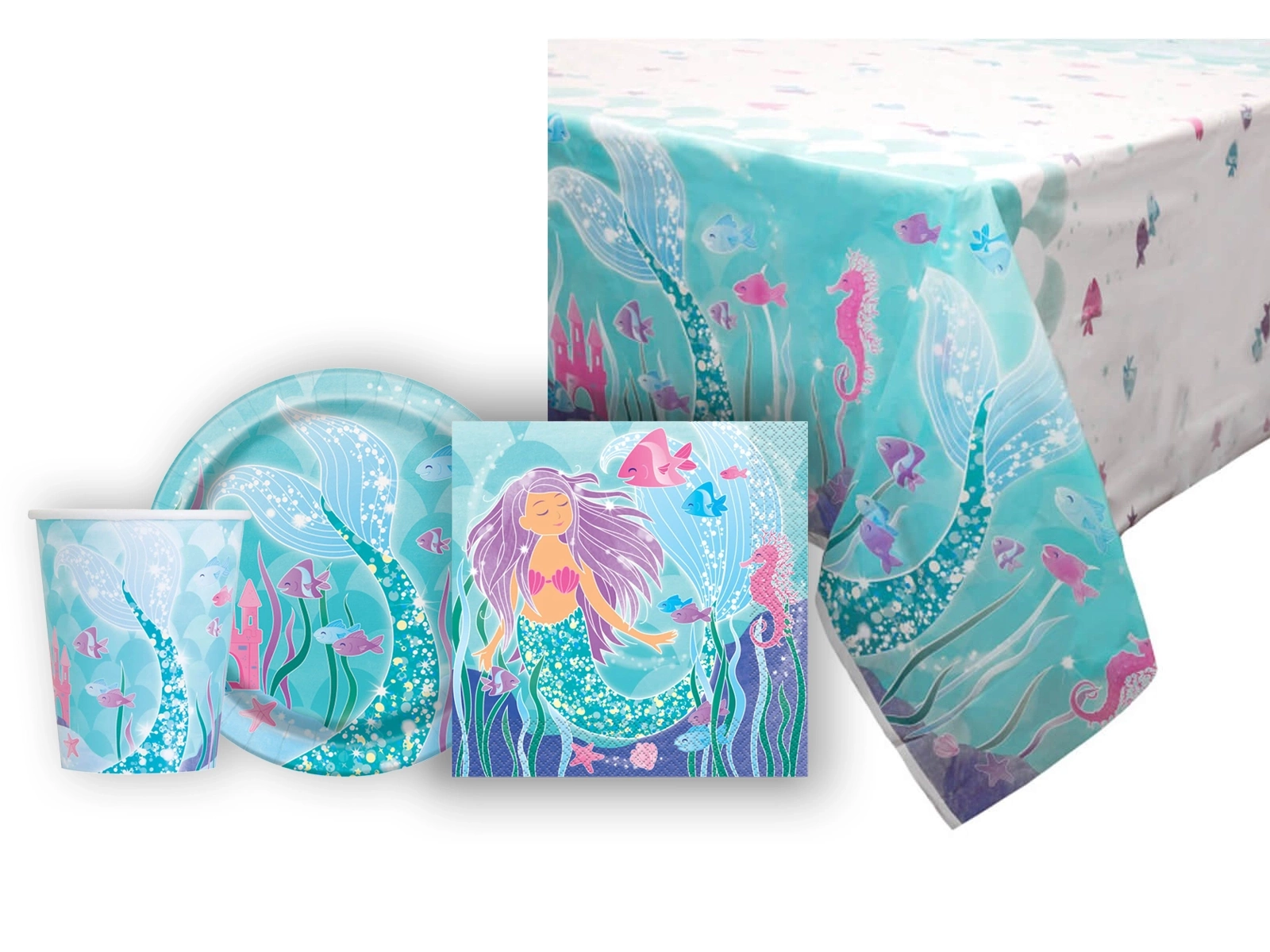 Zestaw obrus + kubeczki + serwetki + talerzyki papierowe Syrenka - 33szt.