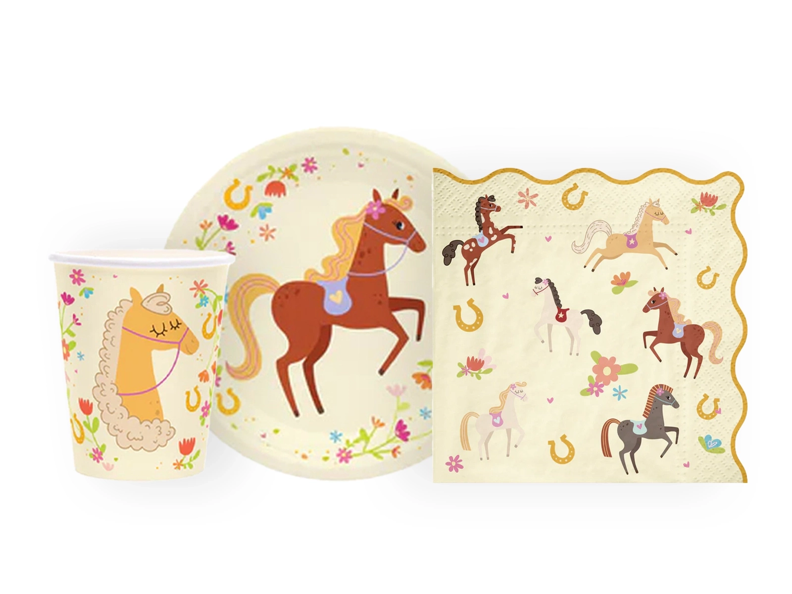 Zestaw kubeczki, serwetki i talerzyki papierowe Koniki - 22 szt.