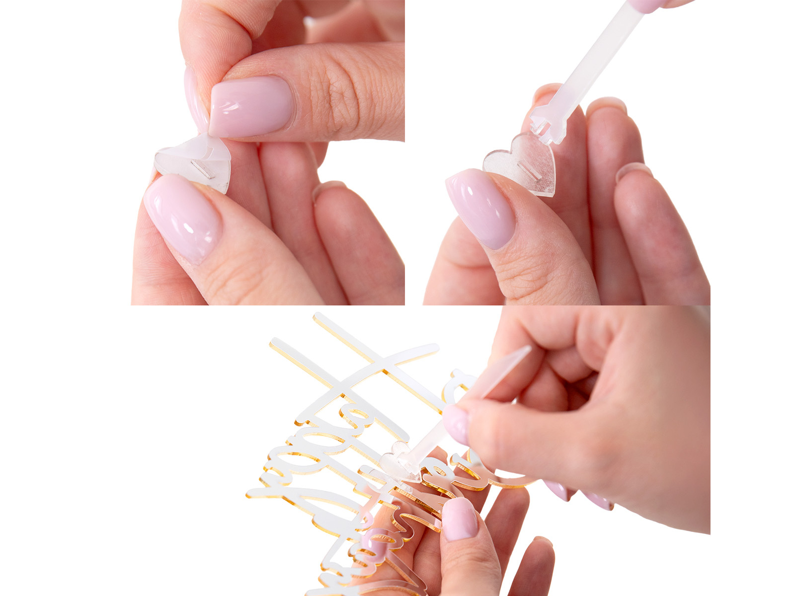 Zestaw zawiera: 1 x topper, 1 x piker, 1 x akrylowe serduszko, które umożliwia połączenie toppera z pikerem.