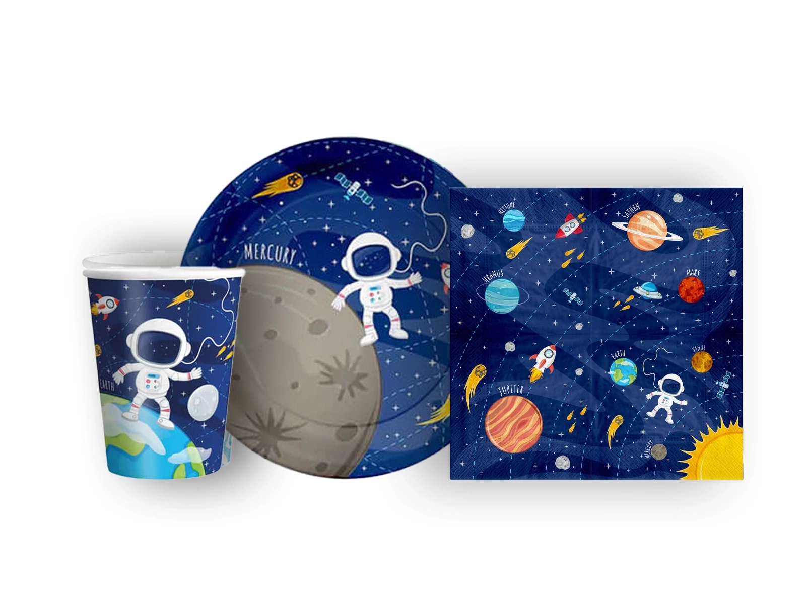 Zestaw kubeczki + serwetki + talerzyki papierowe Planety - 26 szt.