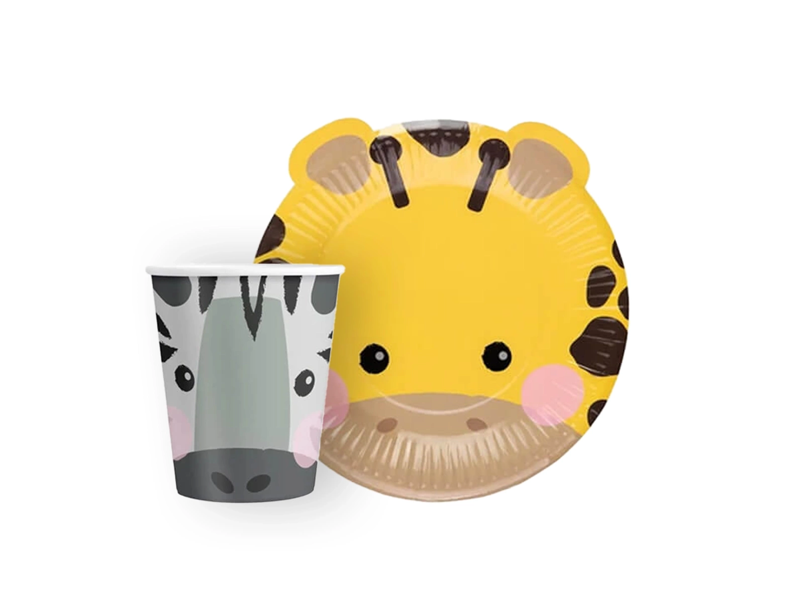Zestaw kubeczki + talerzyki papierowe Zwierzątka - 8 szt.