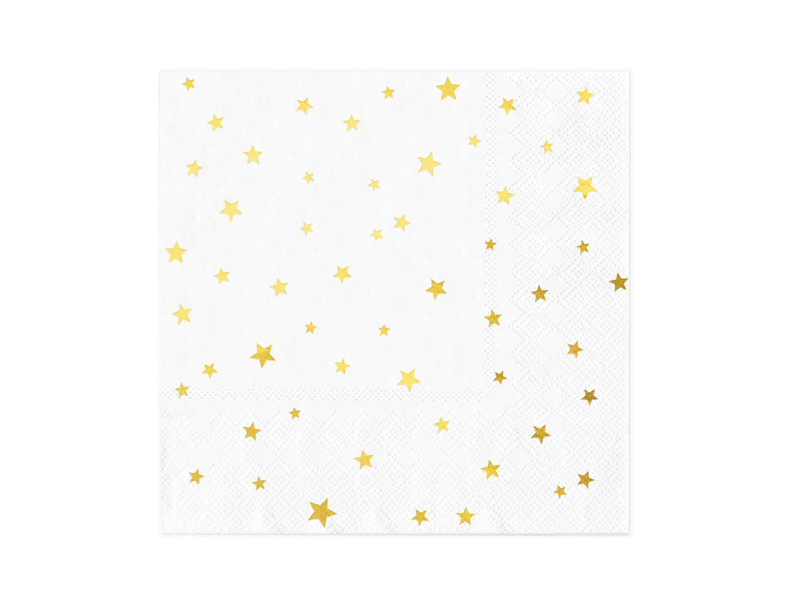 - Serwetki białe w złote gwiazdki - 33 cm - 10 szt.Cena: 8,59 zł / opakowanie