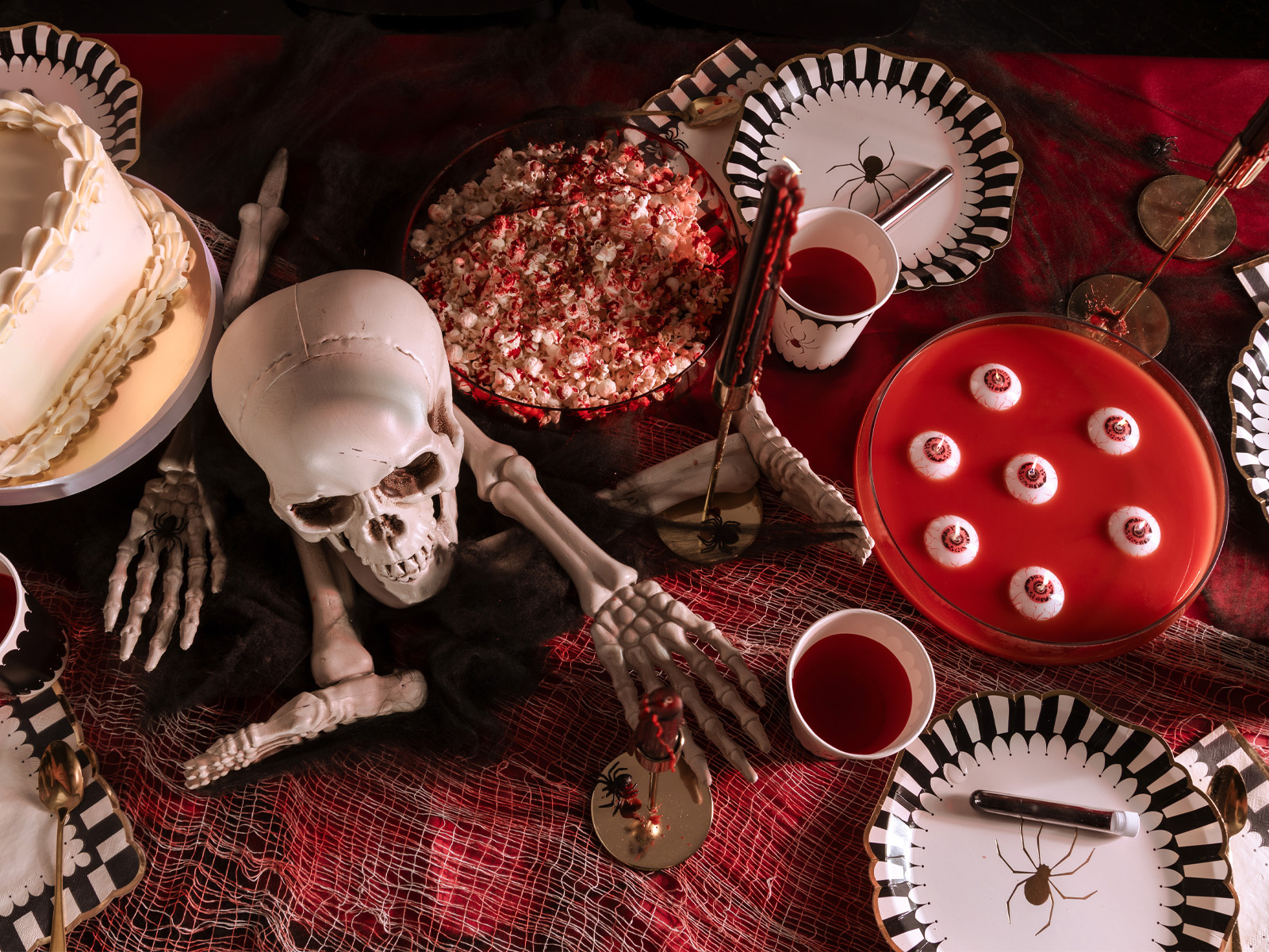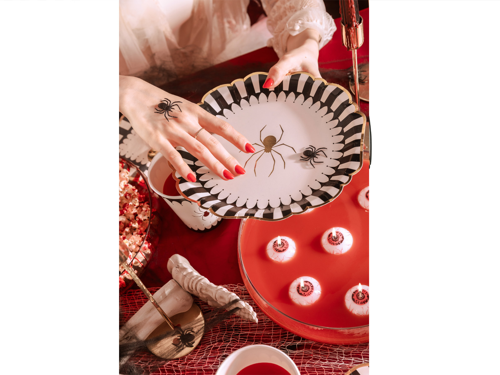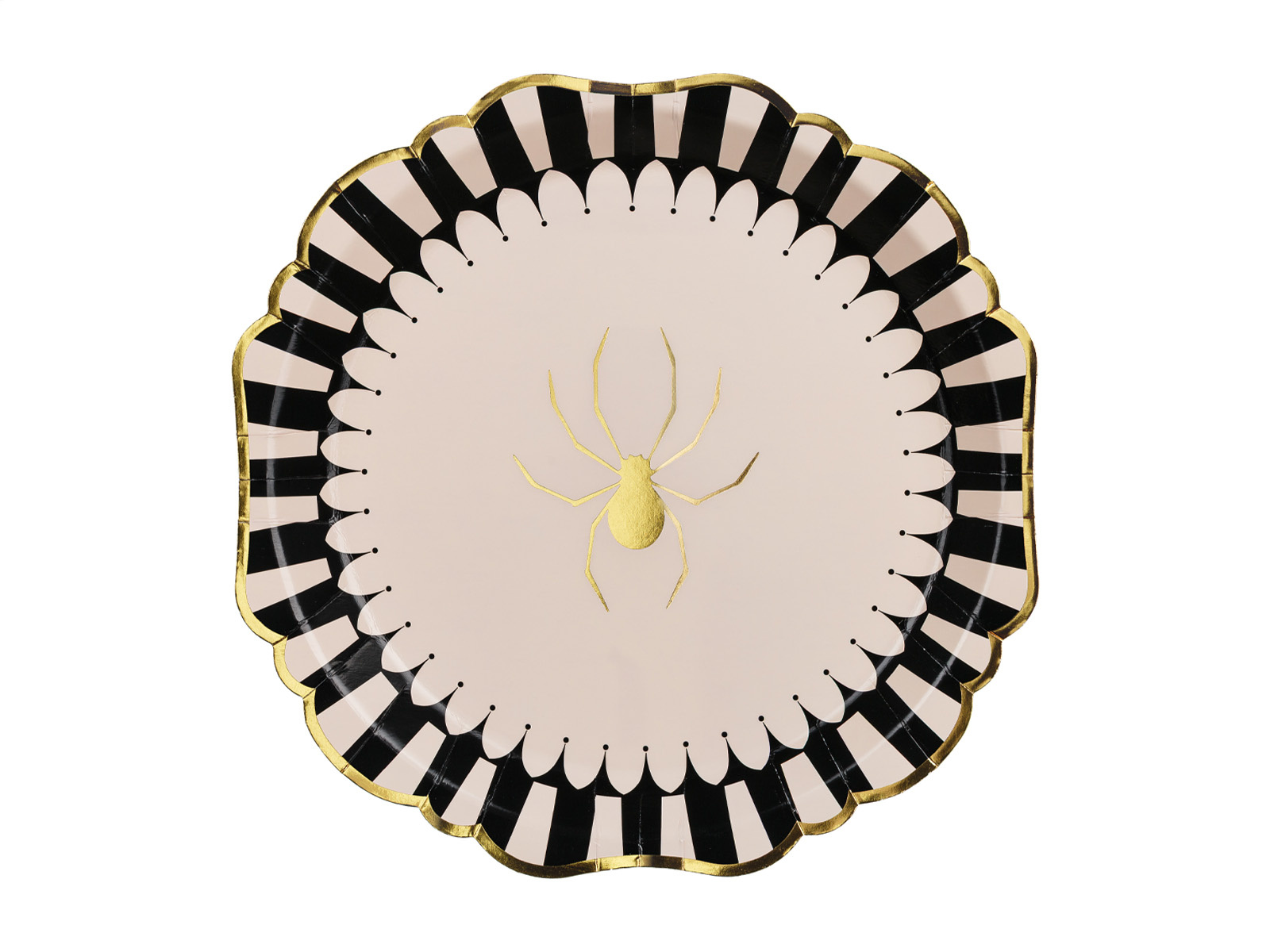 Talerzyki papierowe na Halloween Złoty Pająk - 23 cm - 6 szt.