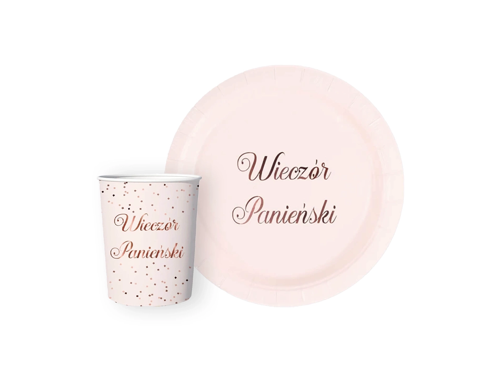 Zestaw kubeczki + talerzyki papierowe Wieczór panieński - 12 szt.
