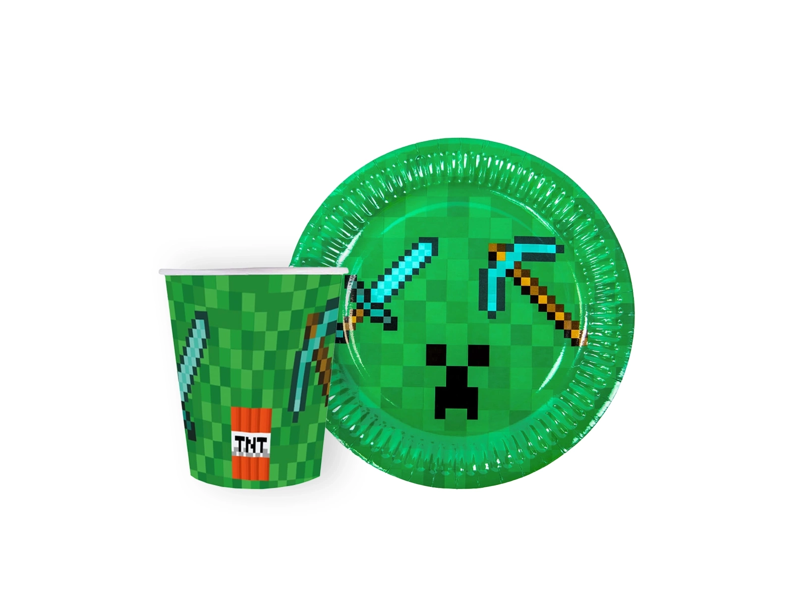 Zestaw kubeczki + talerzyki papierowe Piksele - 24 szt.