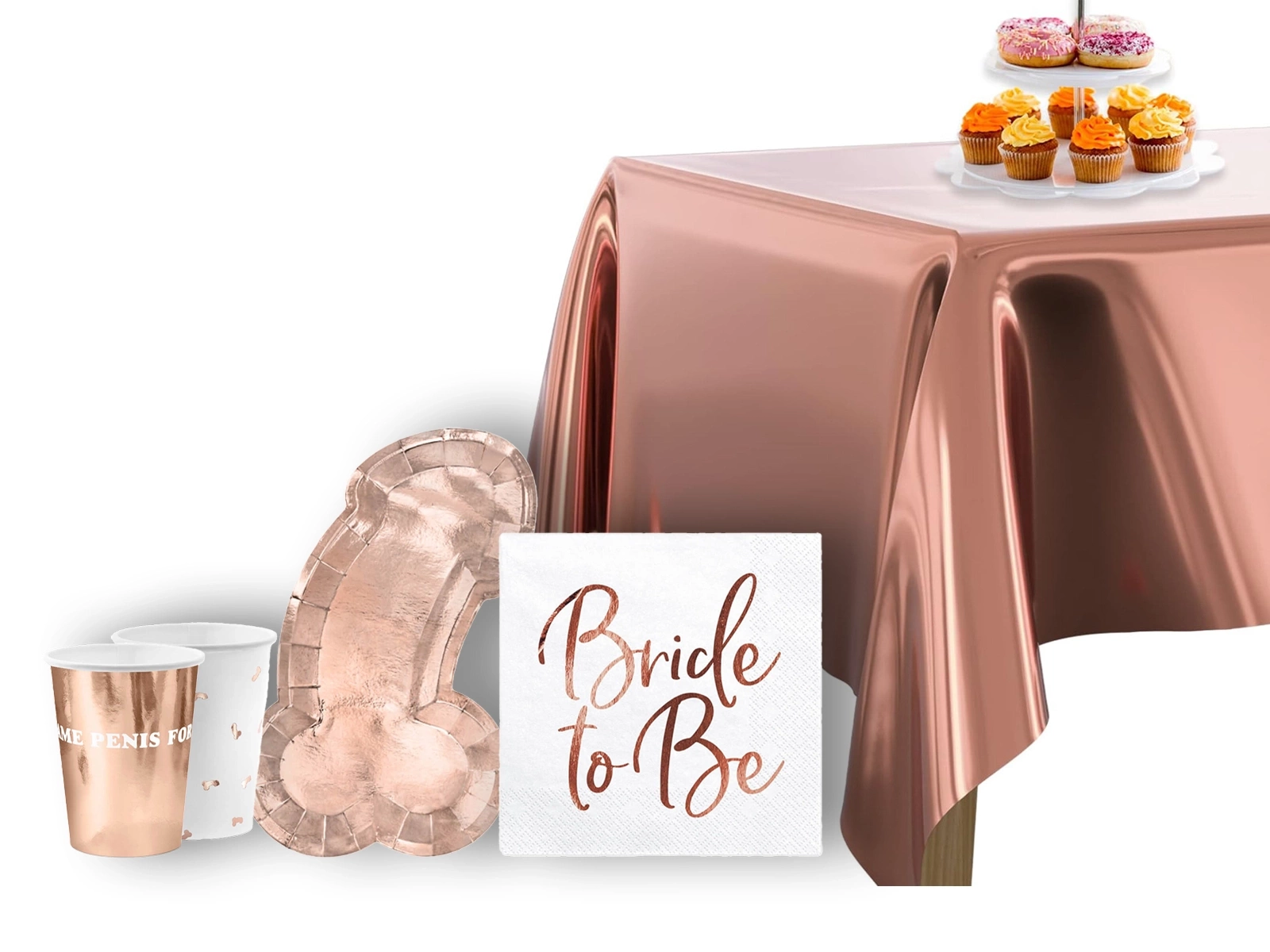 Zestaw obrus + kubeczki + serwetki + talerzyki papierowe Same penis forever różowe złoto - 39 szt.