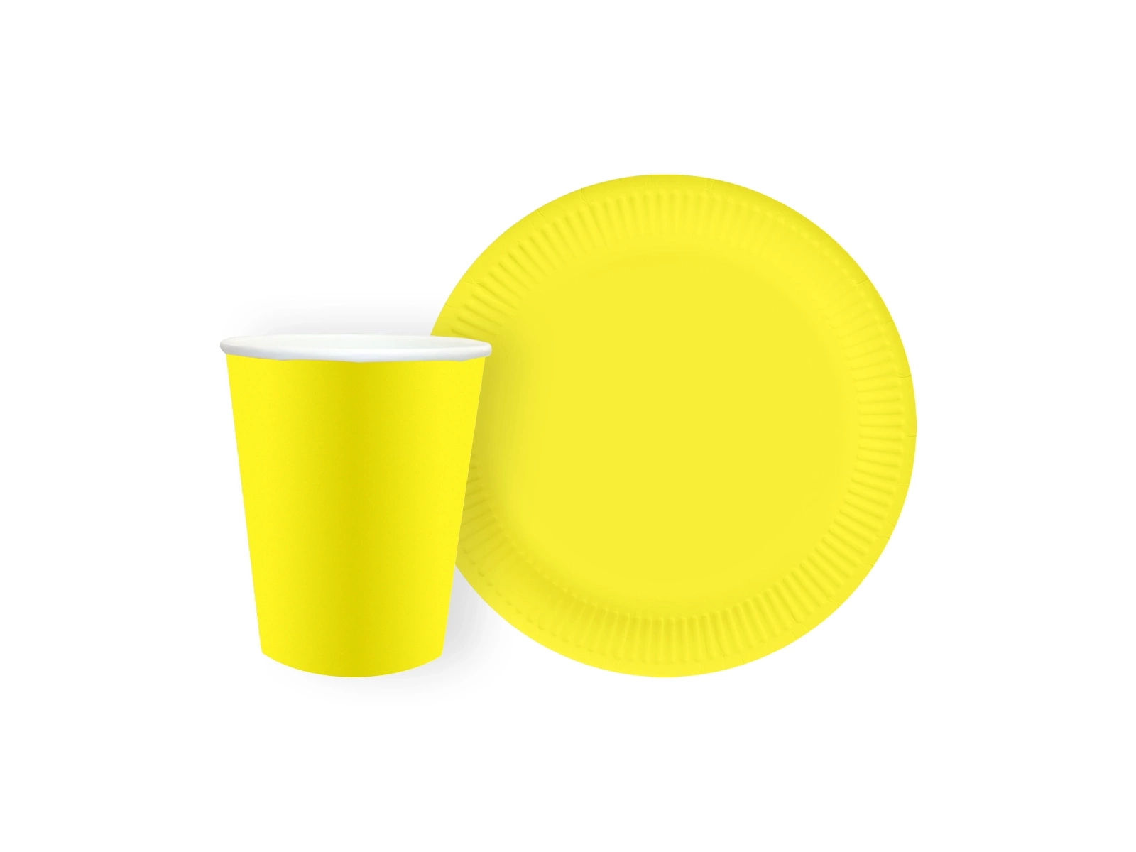 Zestaw kubeczki + talerzyki papierowe żółte - 24 szt.