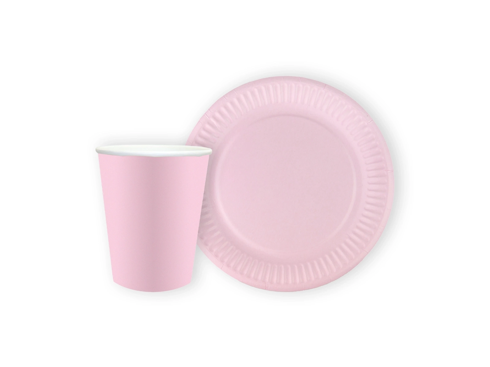 Zestaw kubeczki + talerzyki papierowe różowe - 24 szt.