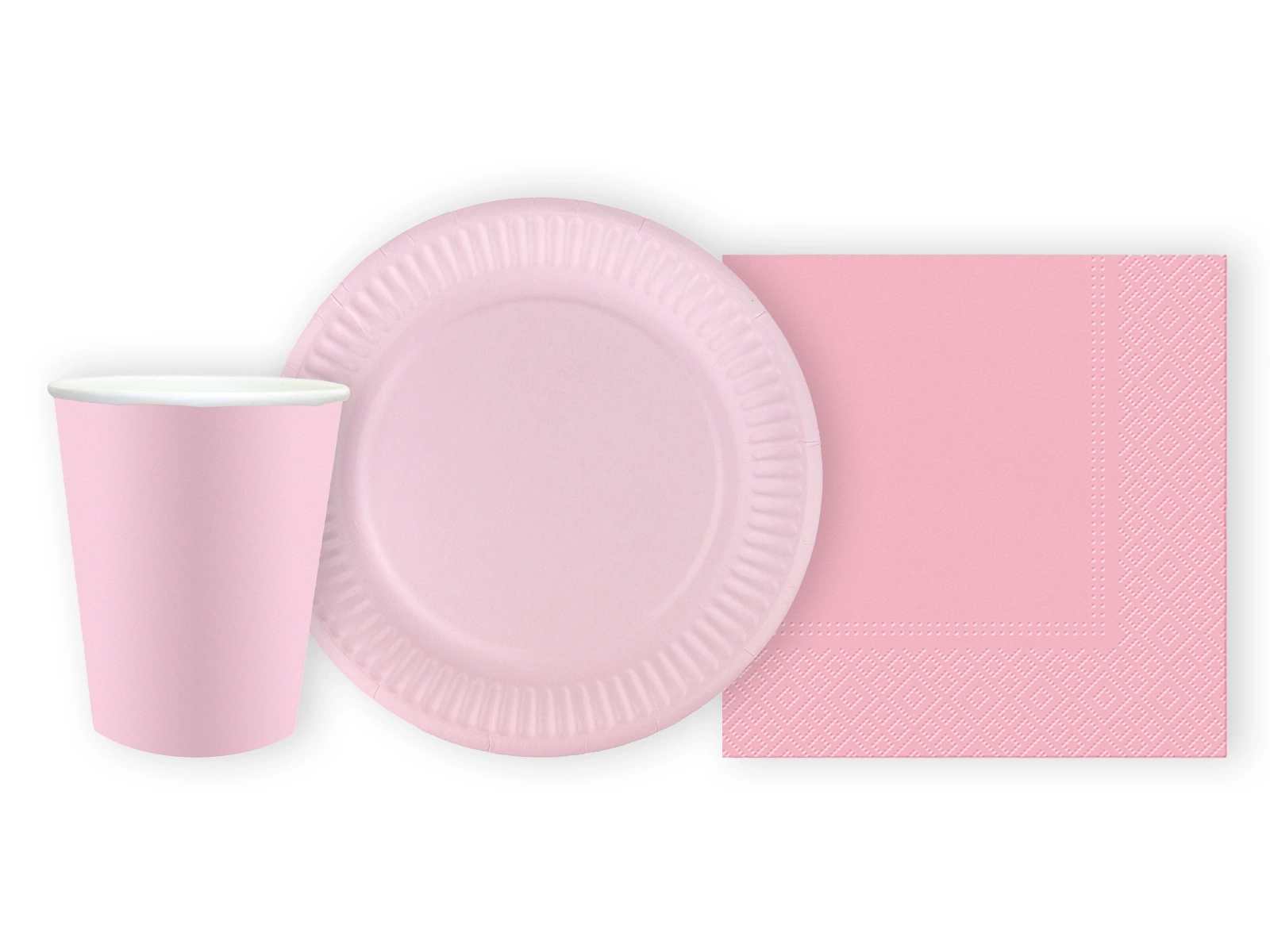Zestaw kubeczki + serwetki + talerzyki papierowe różowe - 44 szt.