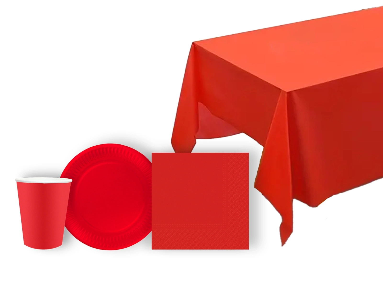 Zestaw obrus + kubeczki + sewretki + talerzyki papierowe czerwone - 45 szt.