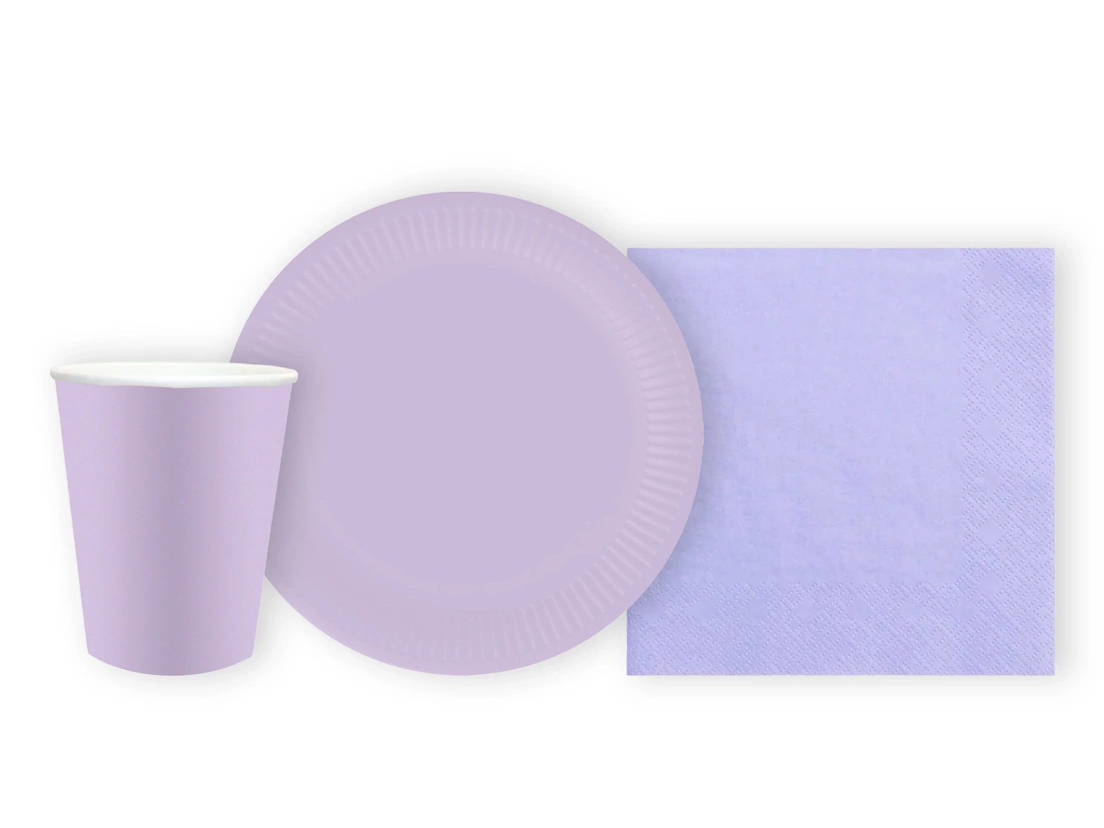 Zestaw kubeczki + talerzyki papierowe fioletowe - 44 szt.