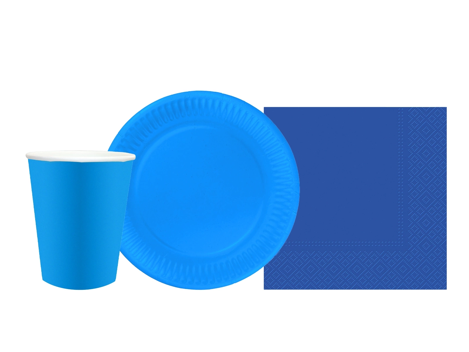 Zestaw kubeczki + serwetki + talerzyki papierowe niebieskie - 44 szt.