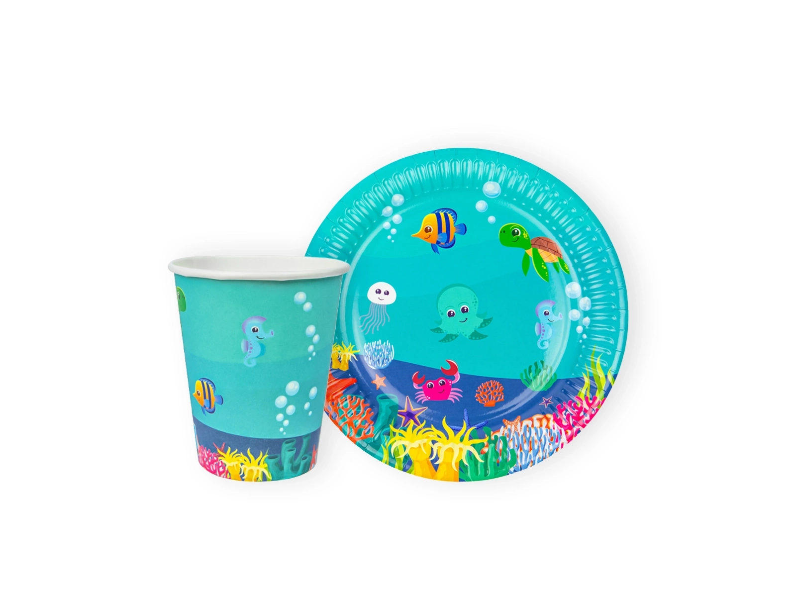 Zestaw kubeczki + talerzyki papierowe Podwodny Świat - 24 szt.