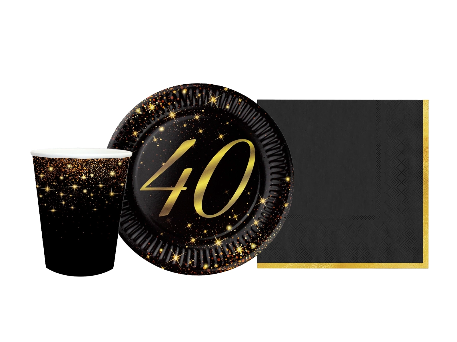 Zestaw kubeczki, serwetki i talerzyki papierowe na 40ste urodziny Sparkling - 34 szt