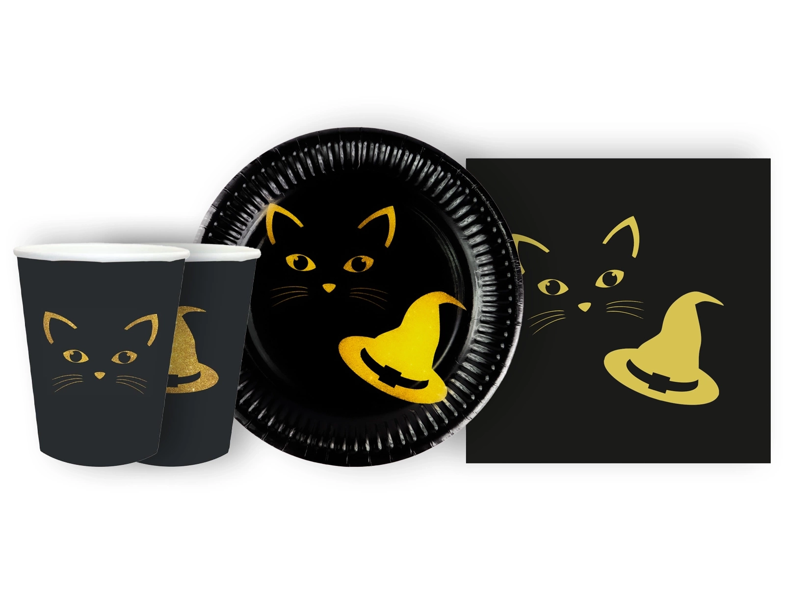 Zestaw kubeczki + serwetki + talerzyki papierowe Czarownica i kot - 44 szt.