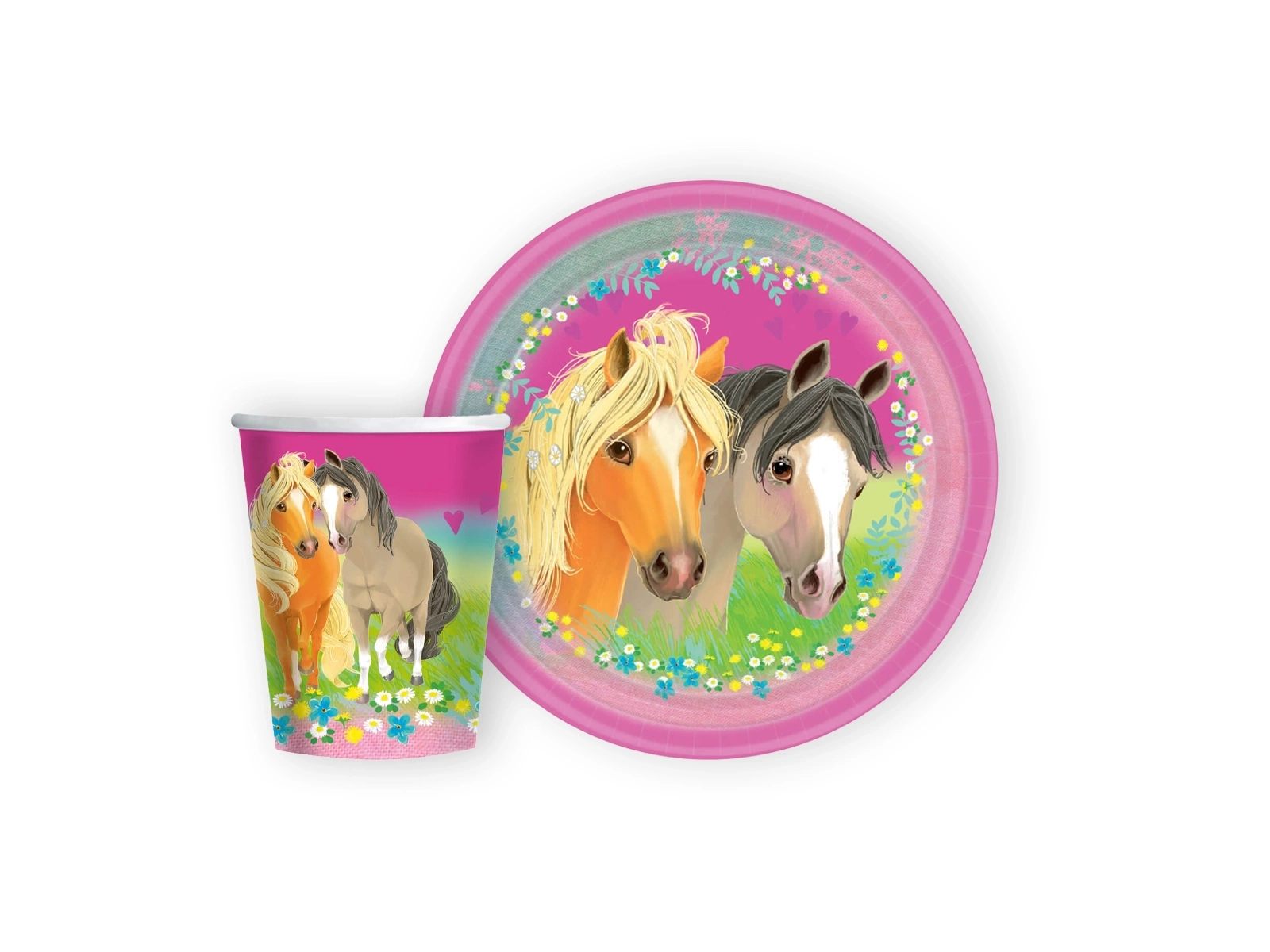 Zestaw kubeczki + talerzyki papierowe Koniki - 16 szt.