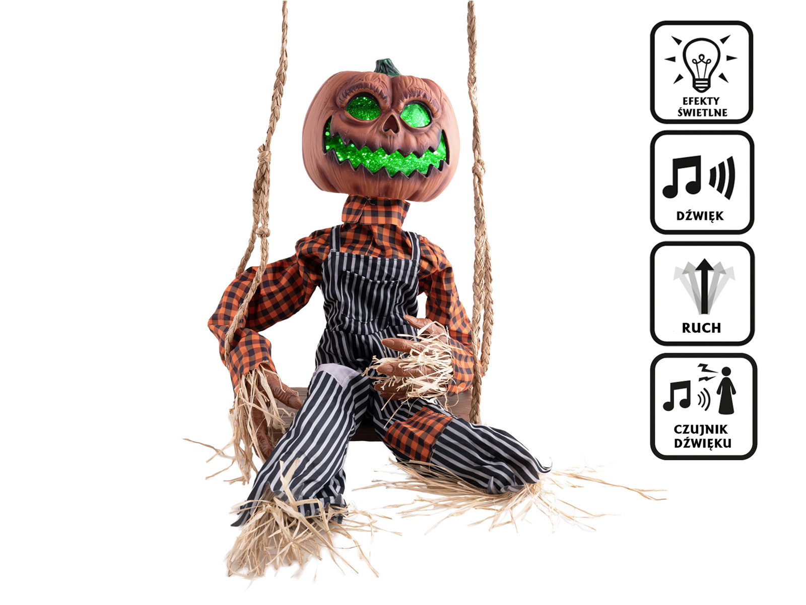Posiada czujniki dźwięku, czyli np. po klaśnięciu dekoracja zaczyna się ruszać oraz uruchamiają się efekty świetlne i dźwiękowe.