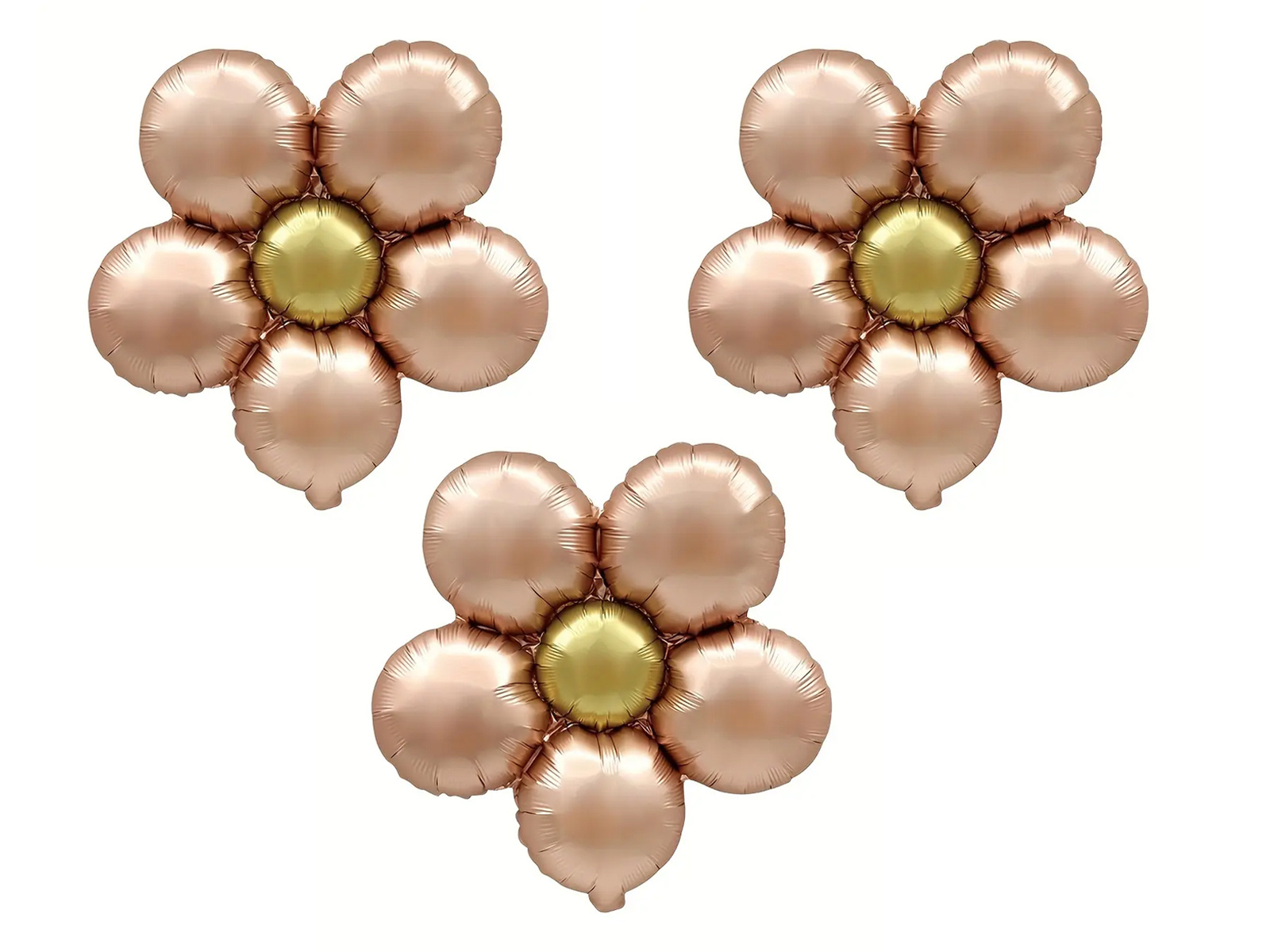 Balon foliowy Kwiat złoty róż - 40 cm - 3 szt.