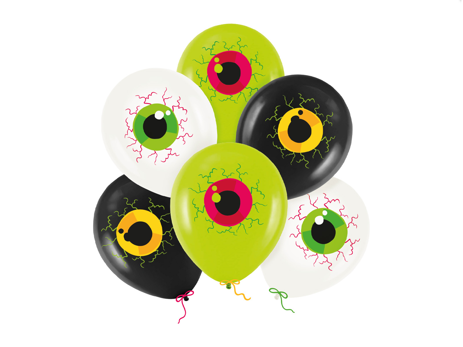 Balony lateksowe Gałki Oczne na Halloween - 30 cm - 6 szt.