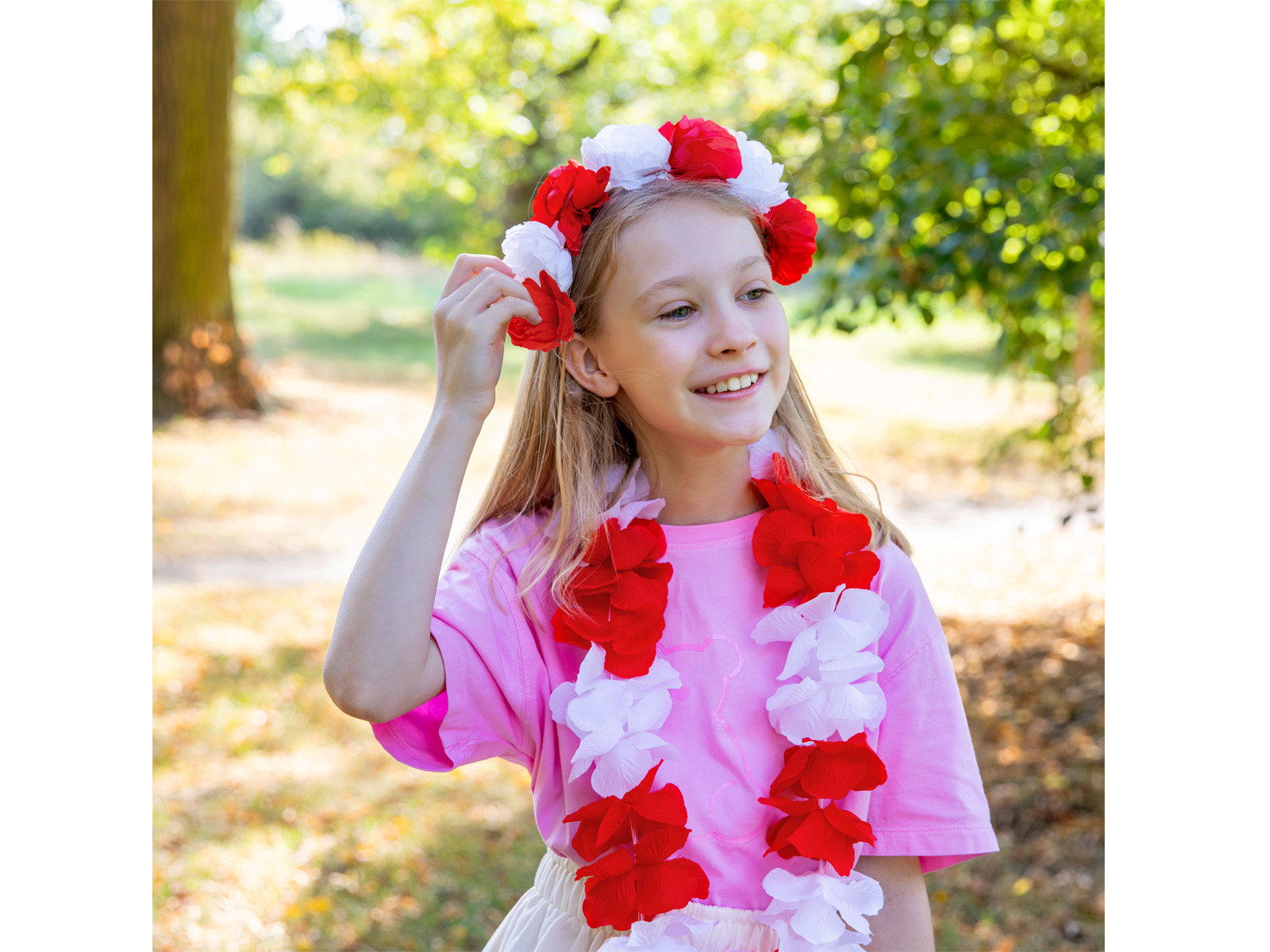Naszyjnik hawajski biało-czerwony - 120 cm - 1 szt.