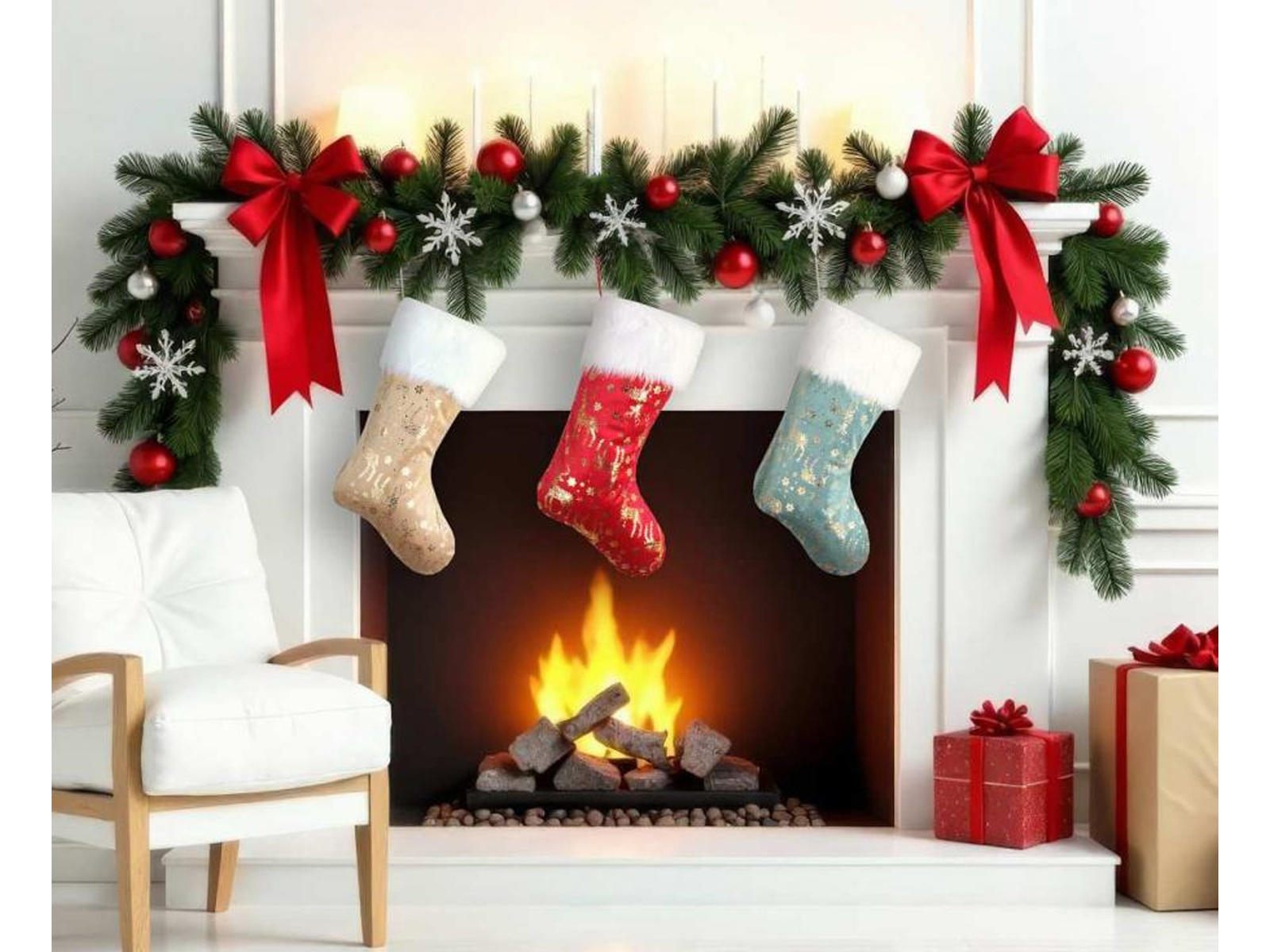 Skarpeta świąteczna błękitna z reniferami - 49 cm - 1 szt.