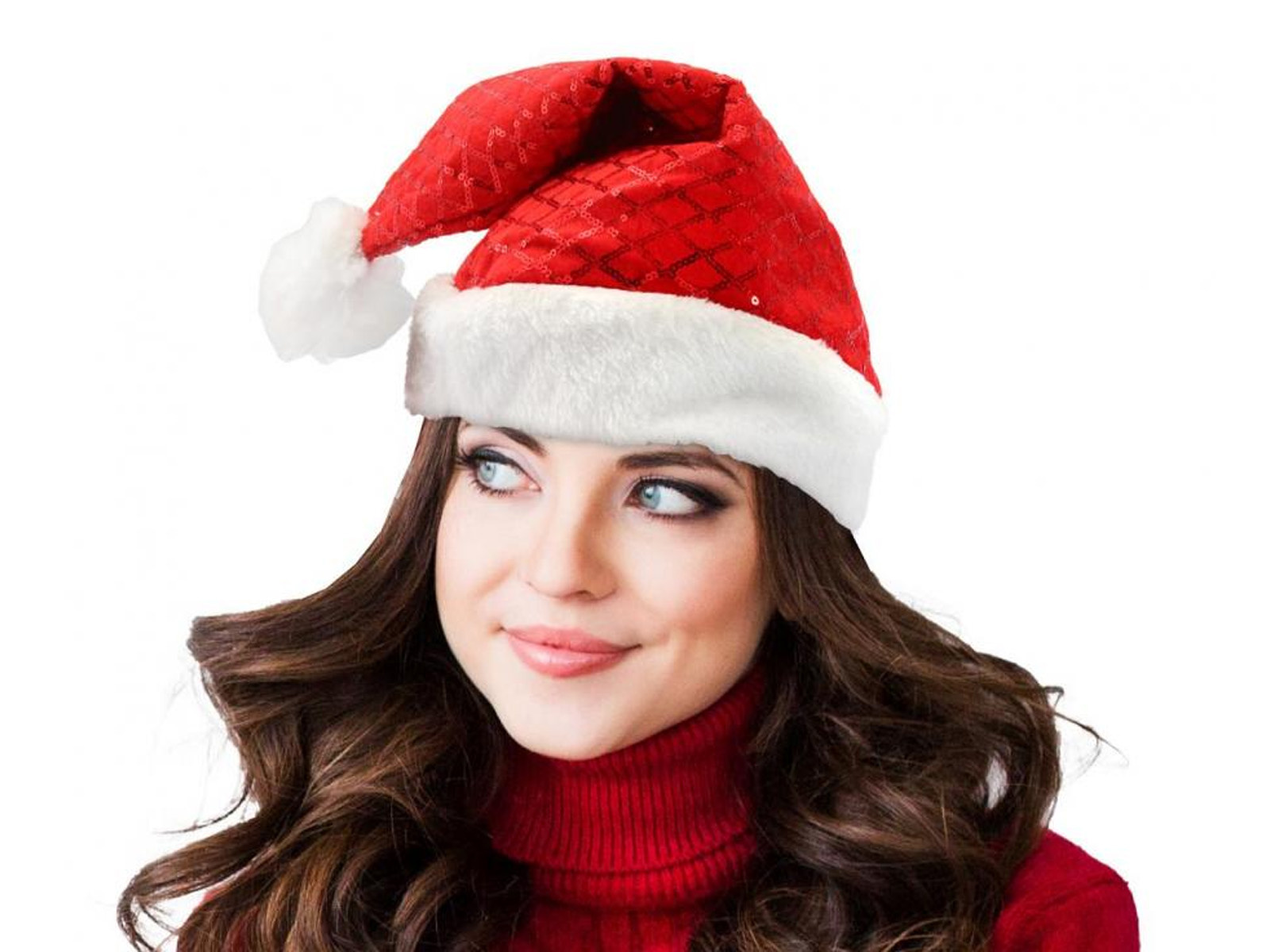 Czapka Mikołaja błyszcząca z cekinami - 1 szt.