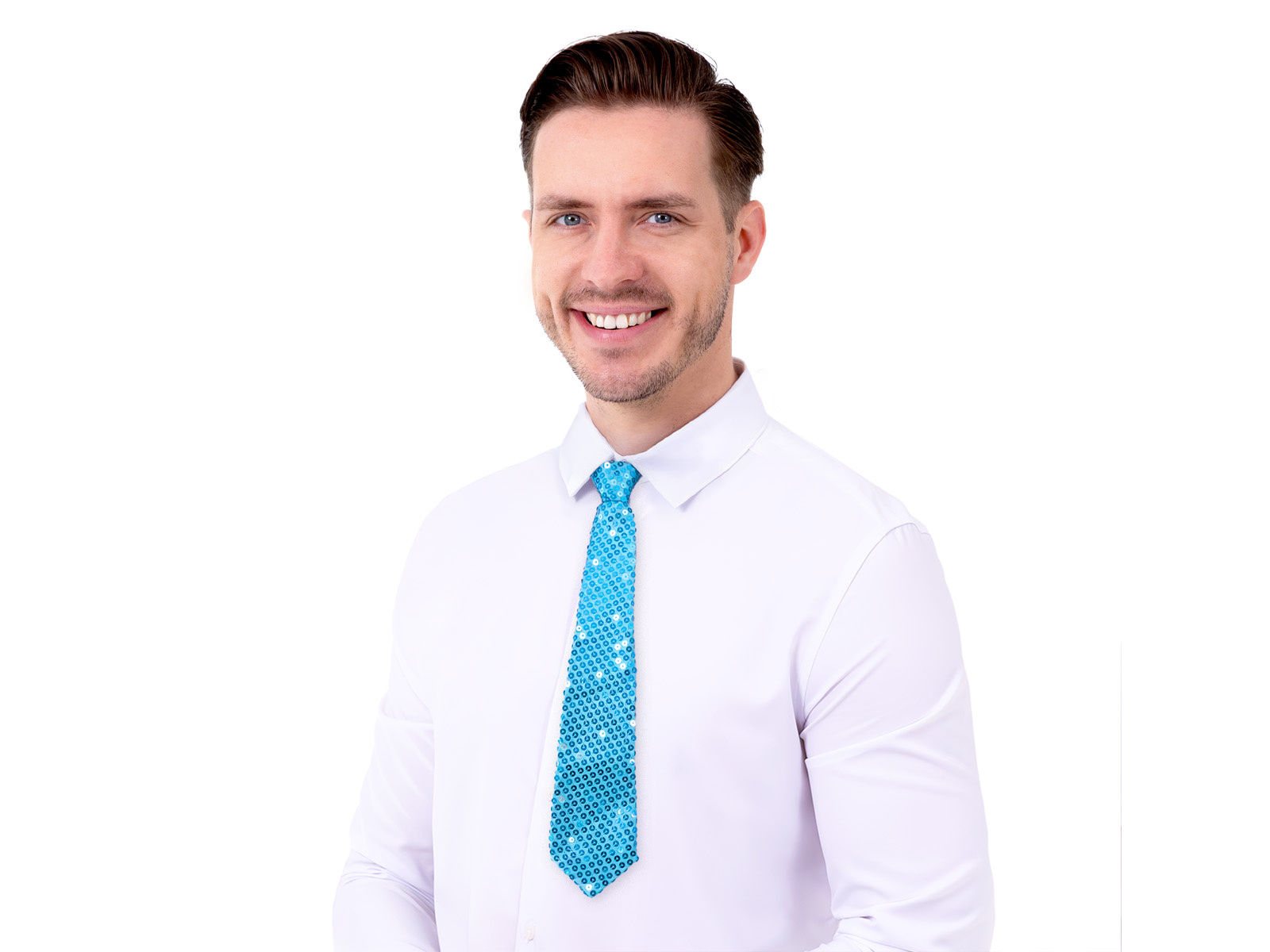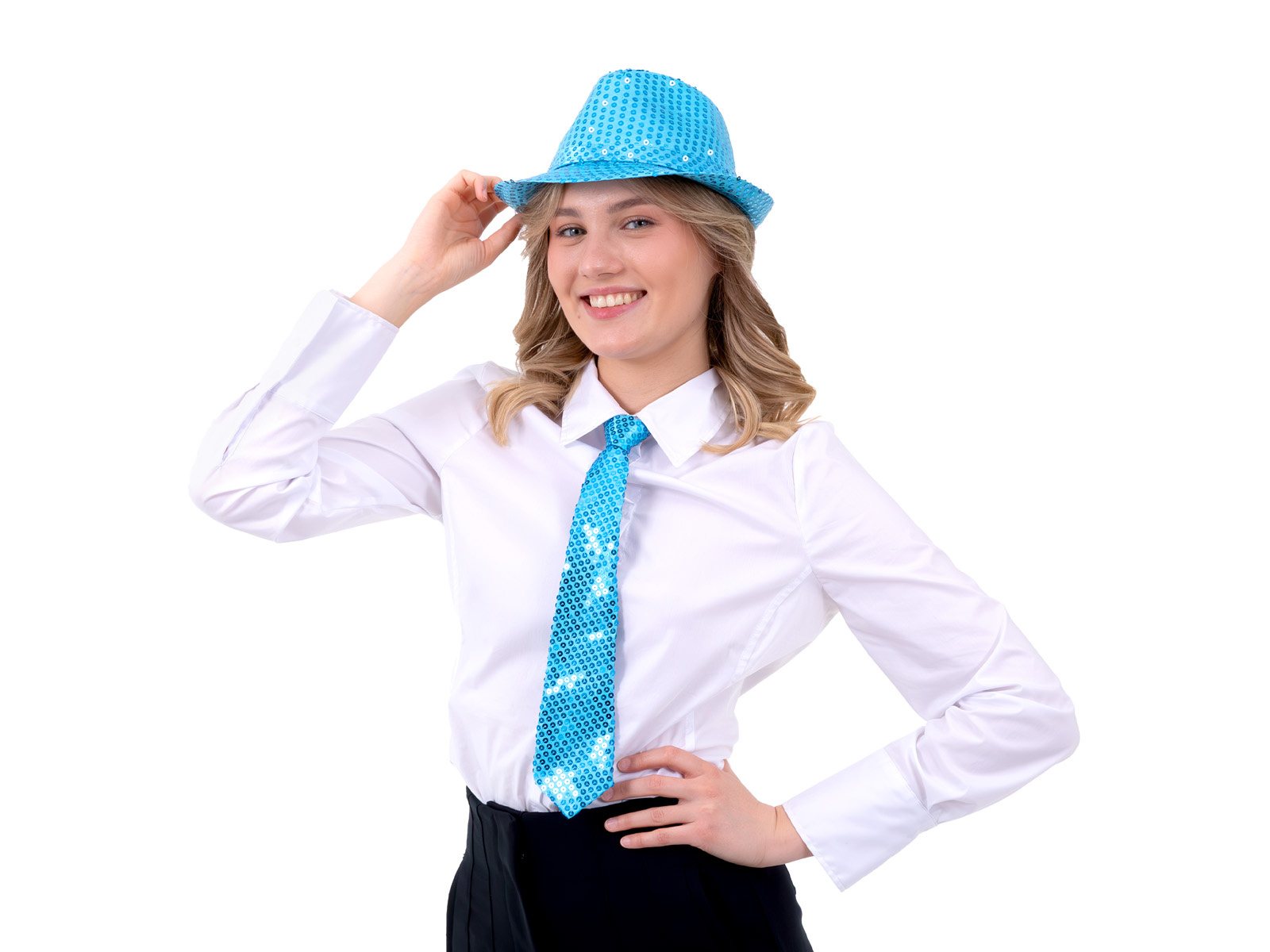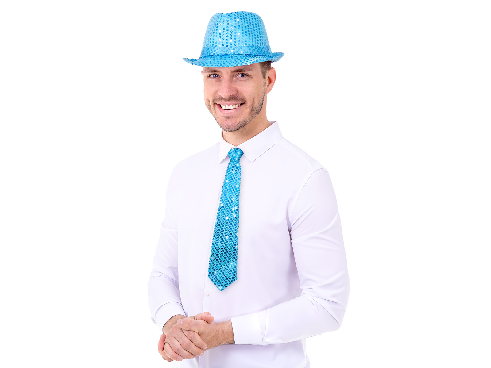 Cekinowy krawat - niebieski - 36 cm - 1 szt.