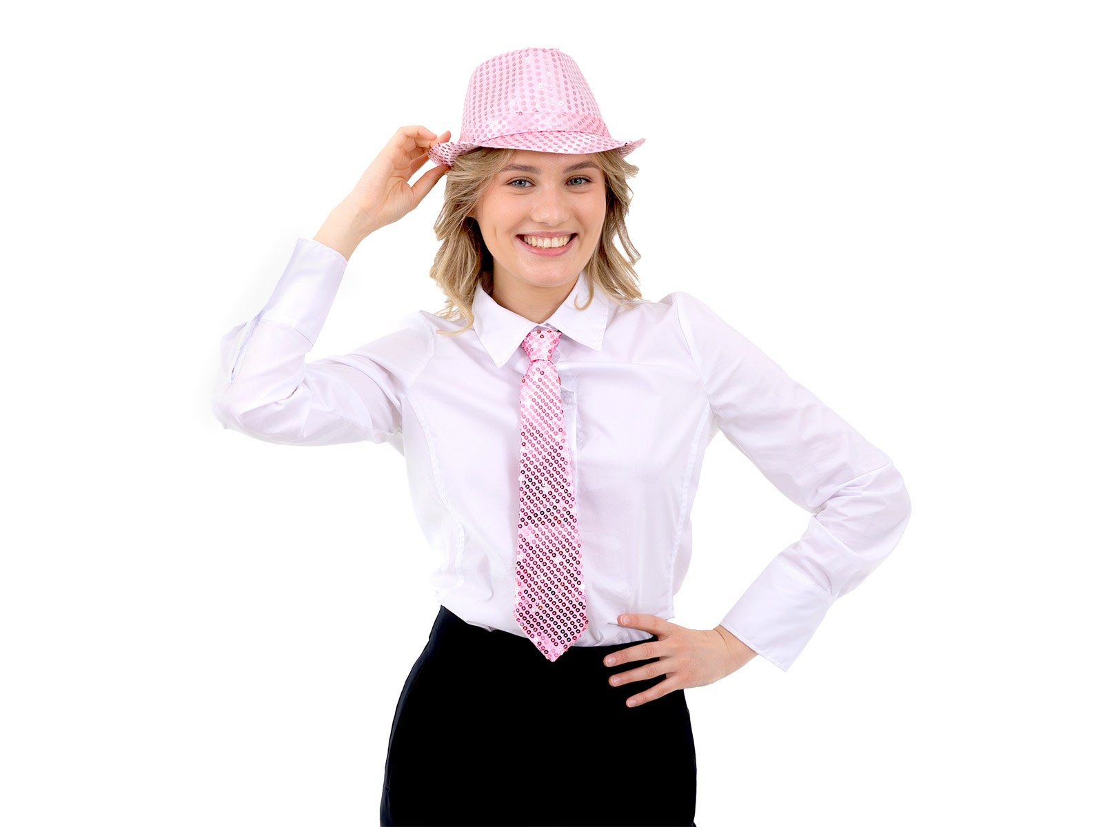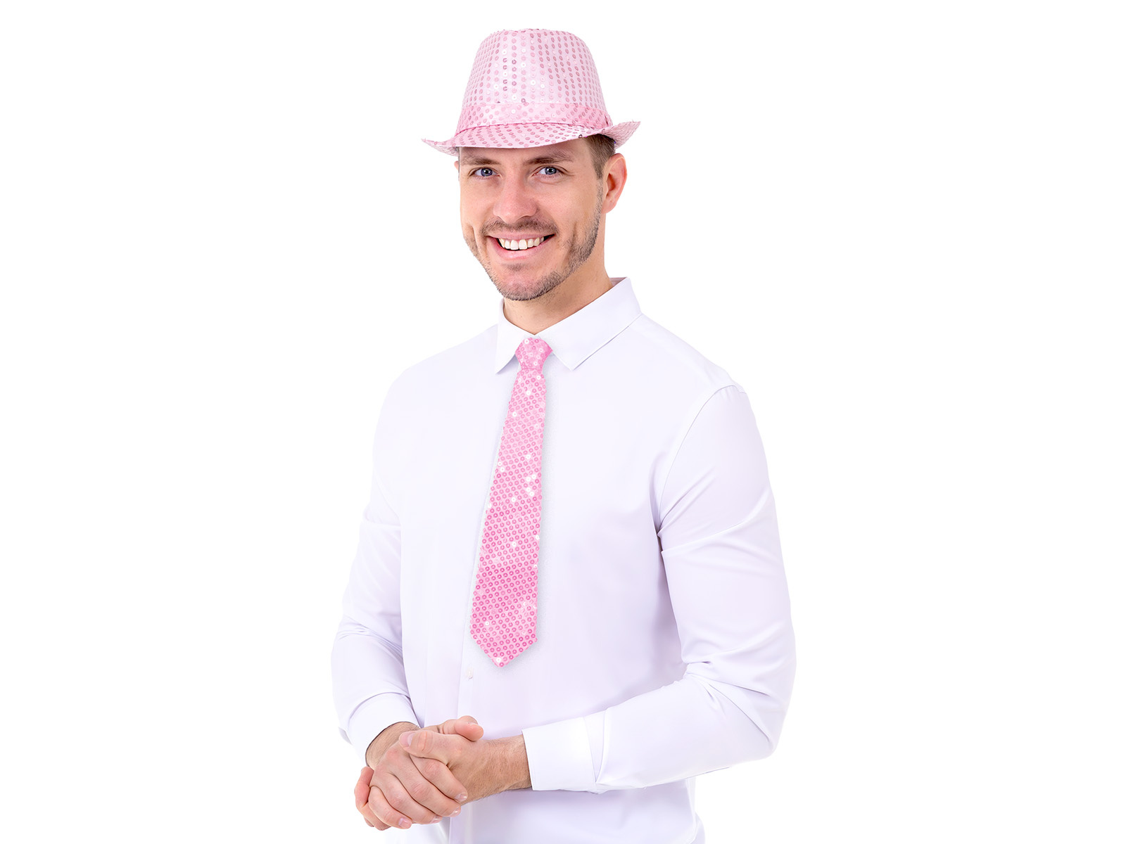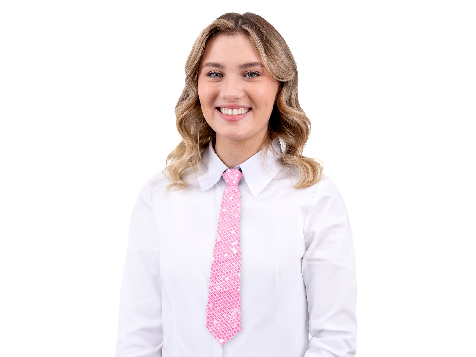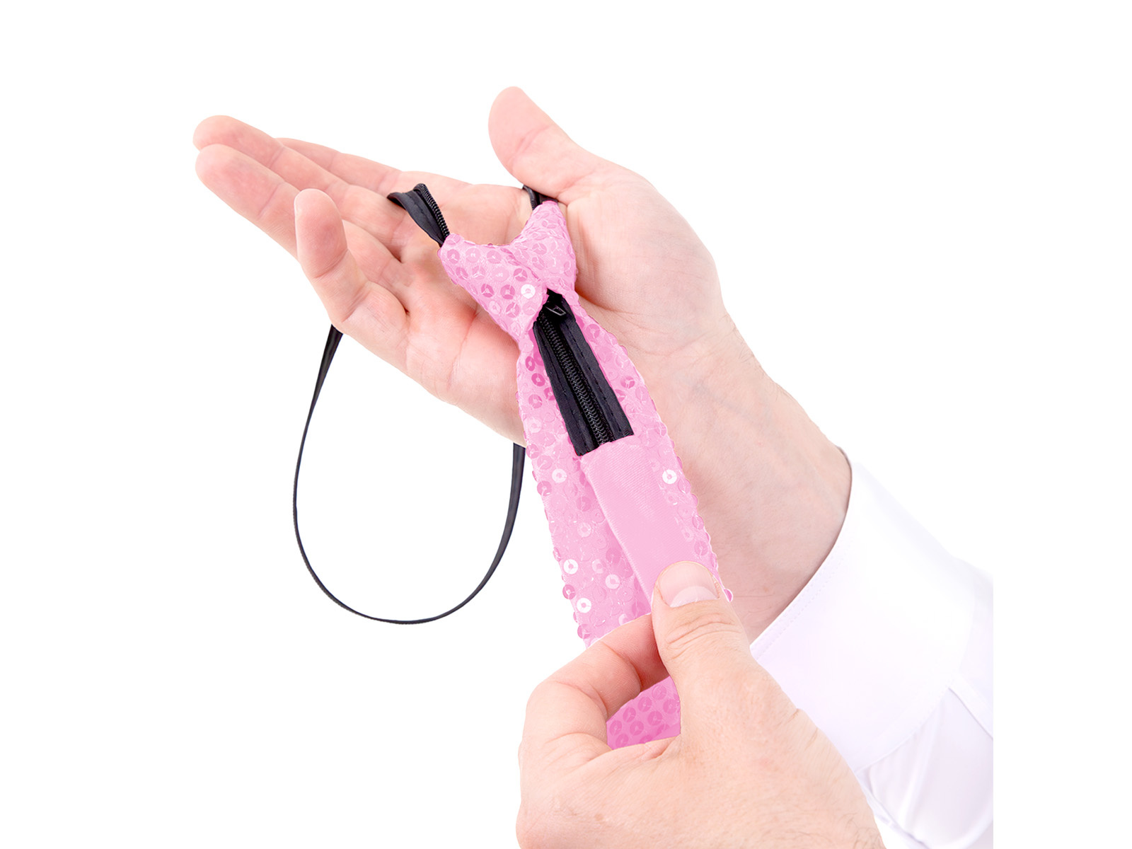Cekinowy krawat - jasny różowy - 36 cm - 1 szt.