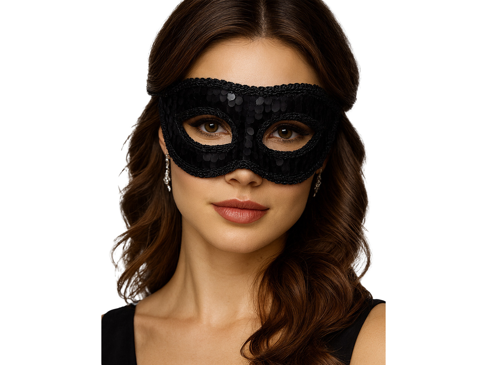 Cekinowa maska karnawałowa - czarna - 1 szt.