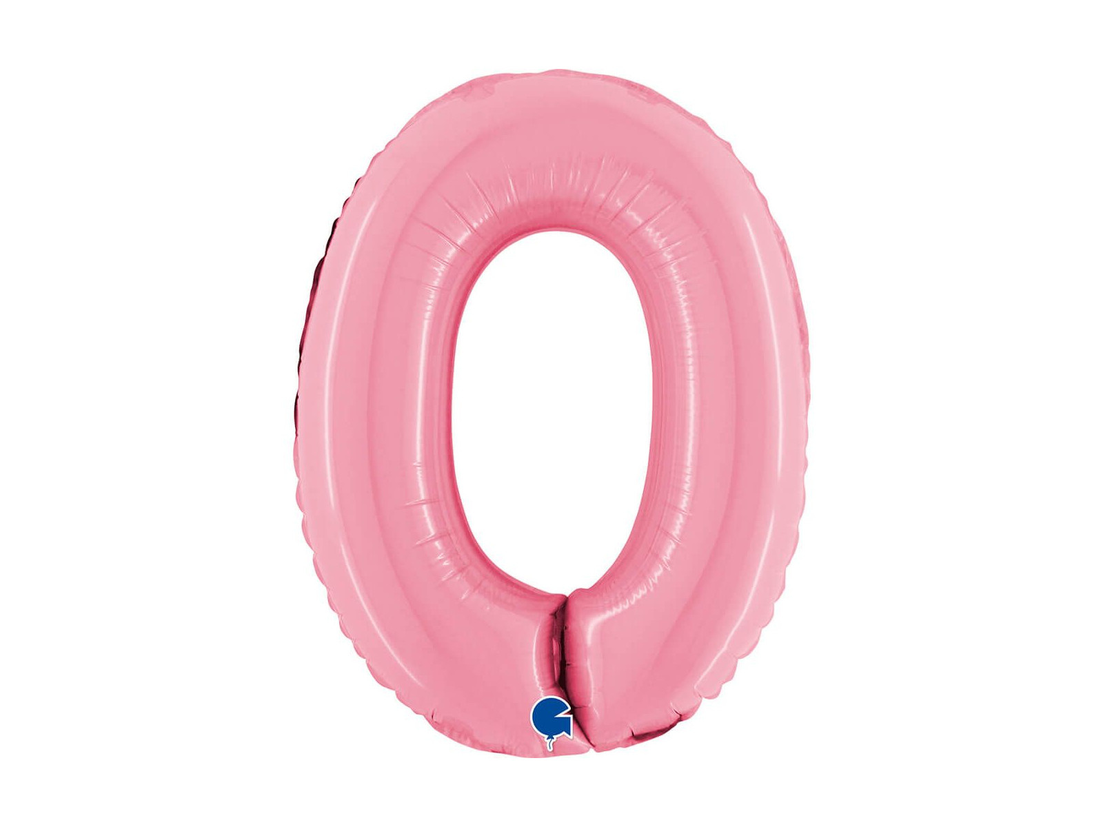 Balon foliowy cyfra 0 pastelowy różowy - 14" - 1 szt.