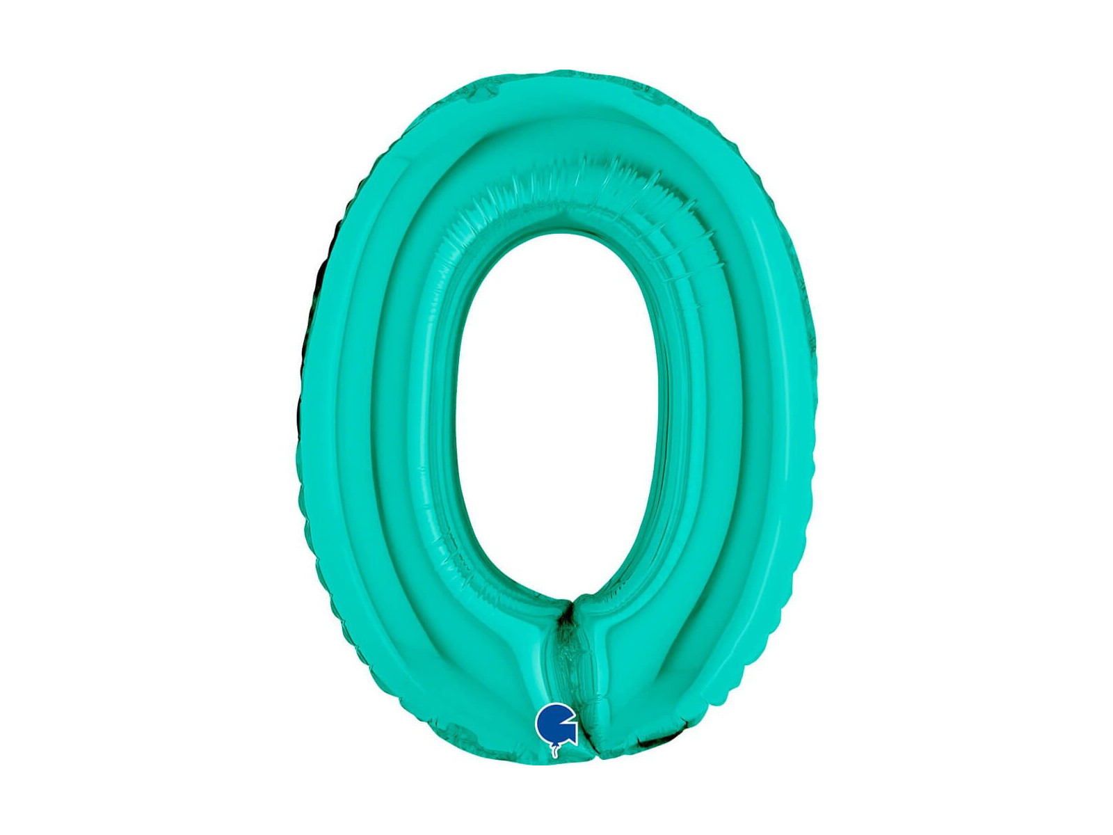 Balon foliowy cyfra 0 turkusowy - 14" - 1 szt.