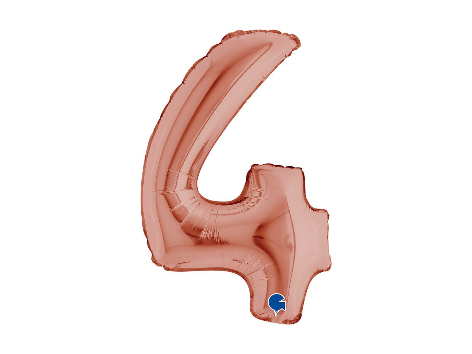 Balon foliowy cyfra 4 złoty róż - 14" - 1 szt.