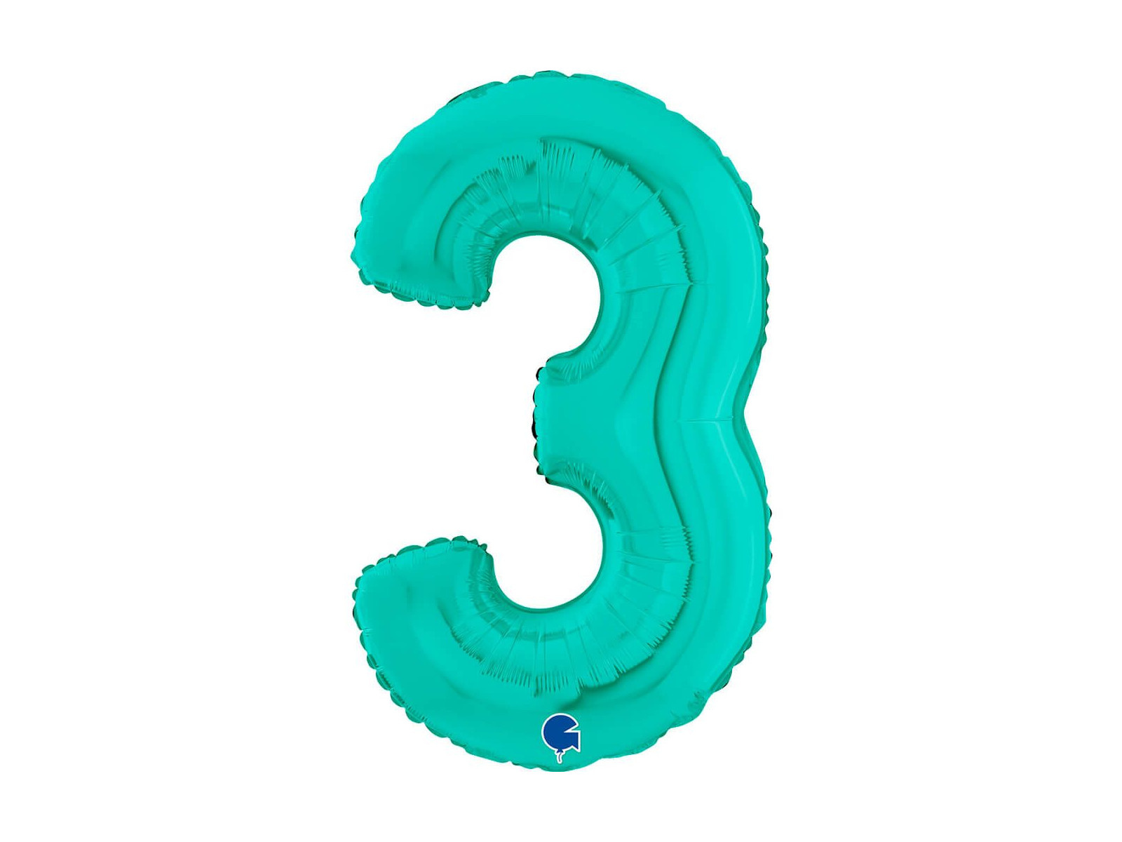 Balon foliowy cyfra 3 turkusowy - 26" - 1 szt.