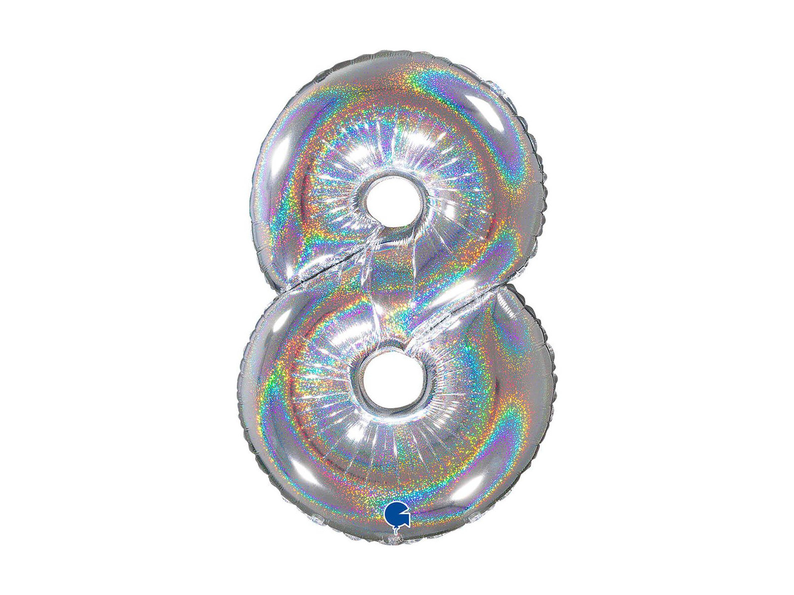 Balon foliowy cyfra 8 brokatowy holograficzny srebrny - 26" - 1 szt.