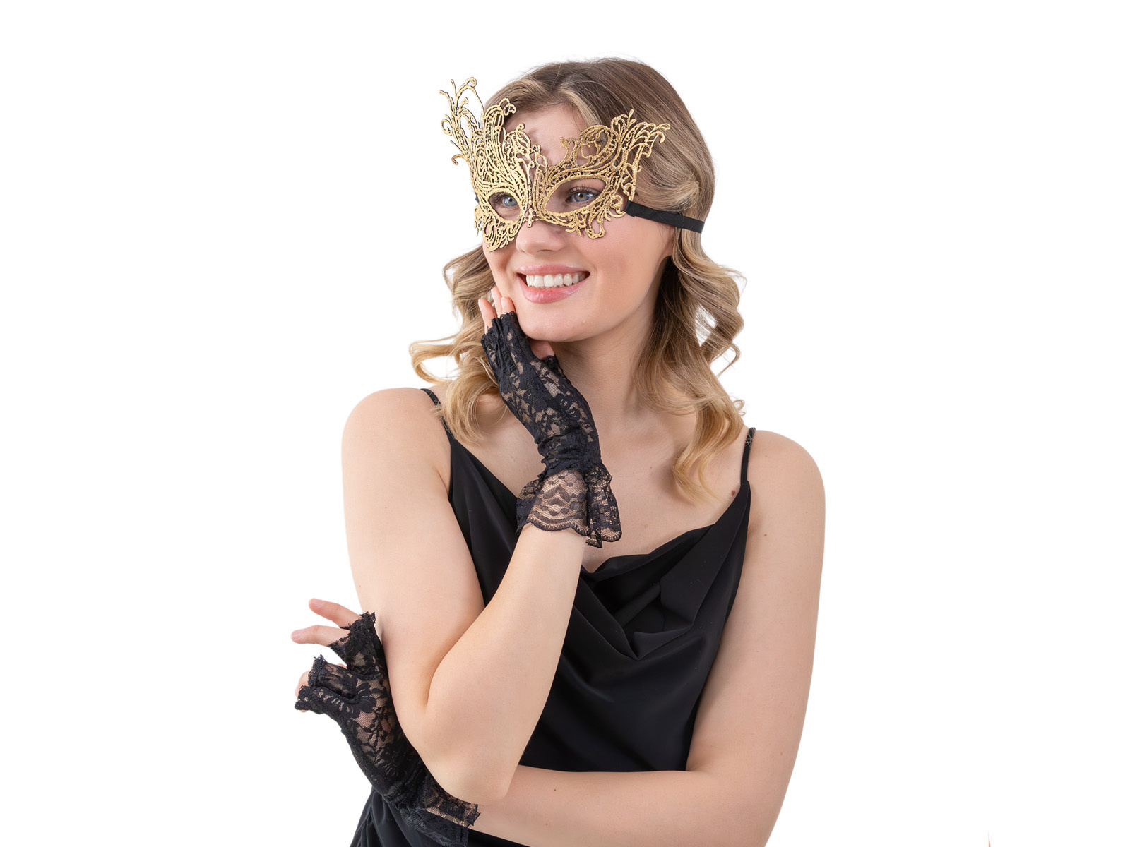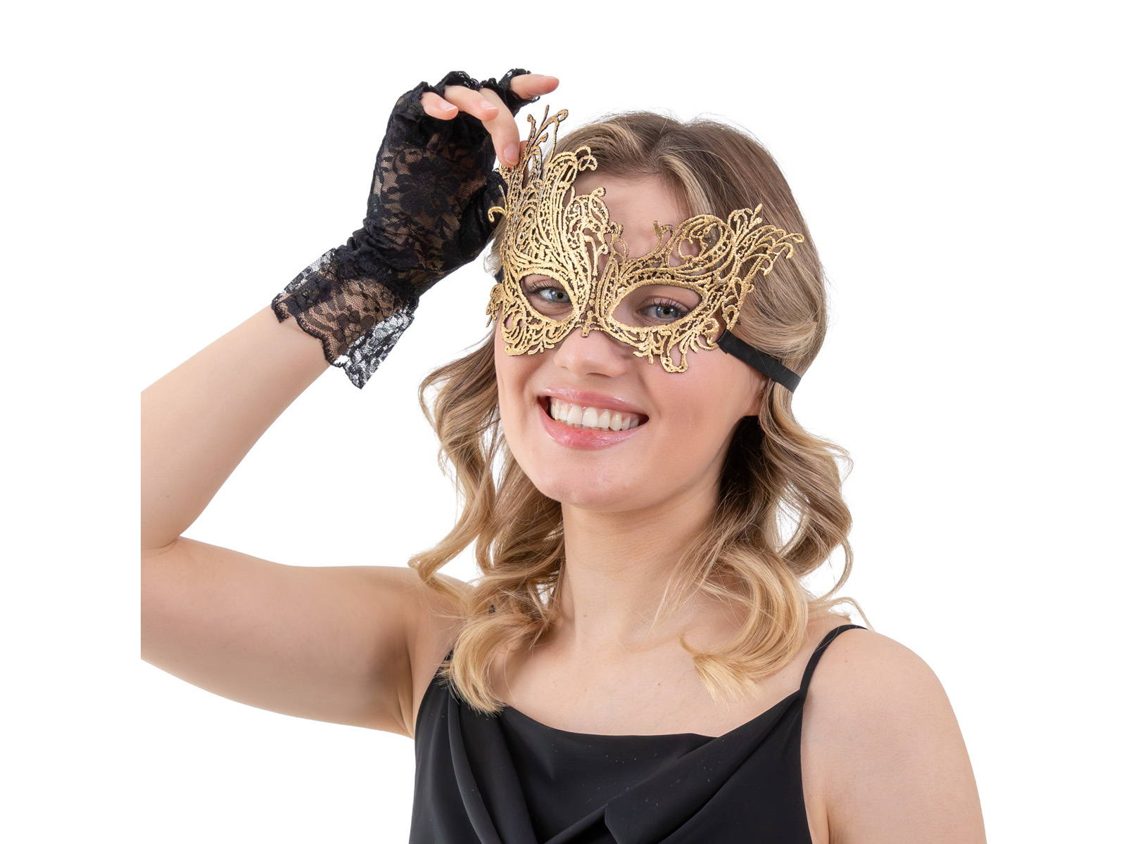 Maska karnawałowa koronkowa - złota - 1 szt.