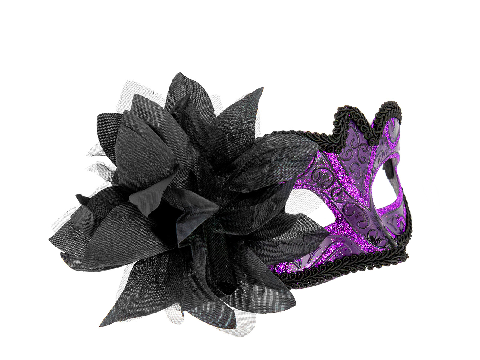 Maska karnawałowa z kwiatem - fioletowa - 1 szt.